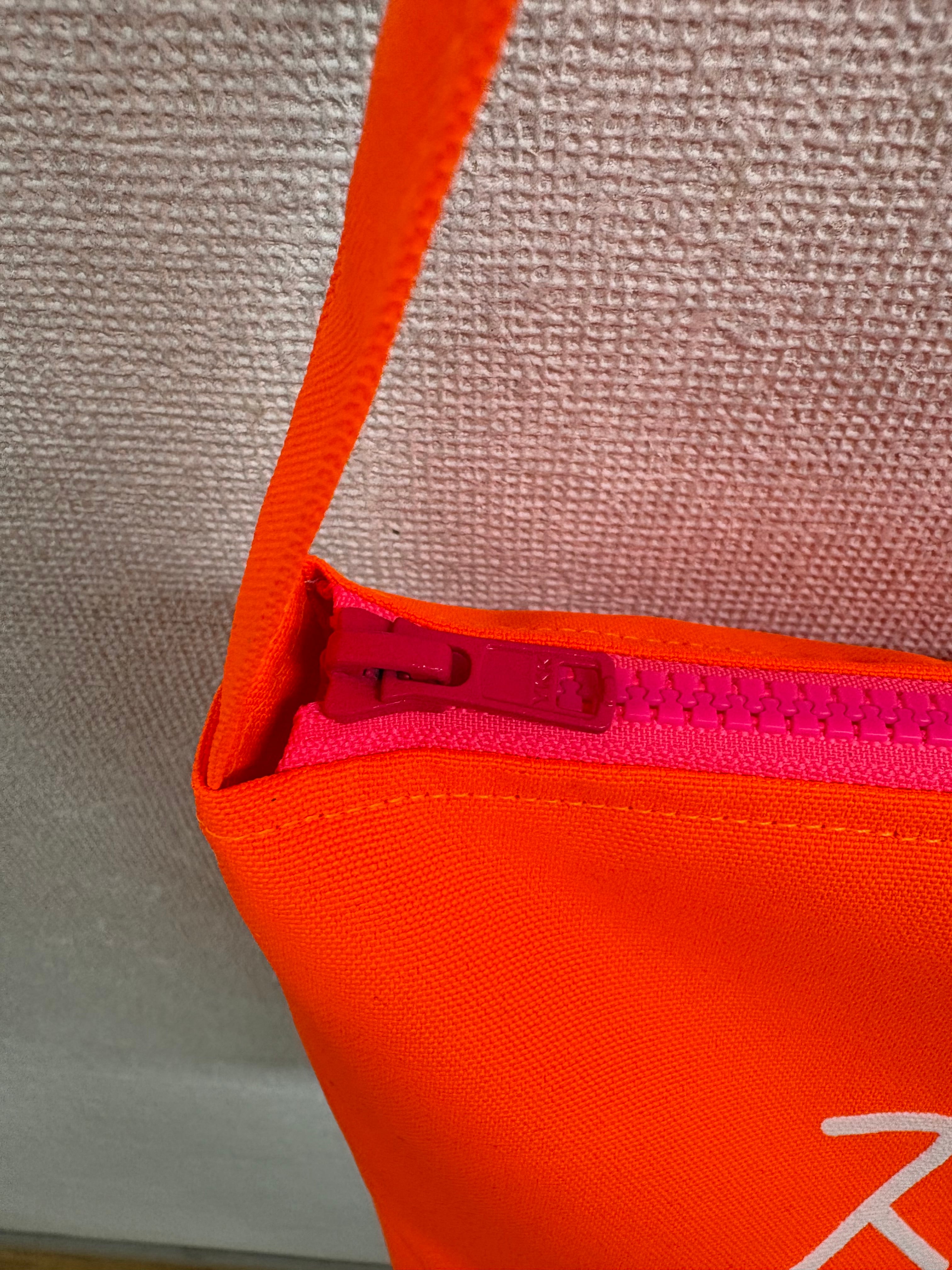 蛍光オレンジ(ファスナーはピンク)