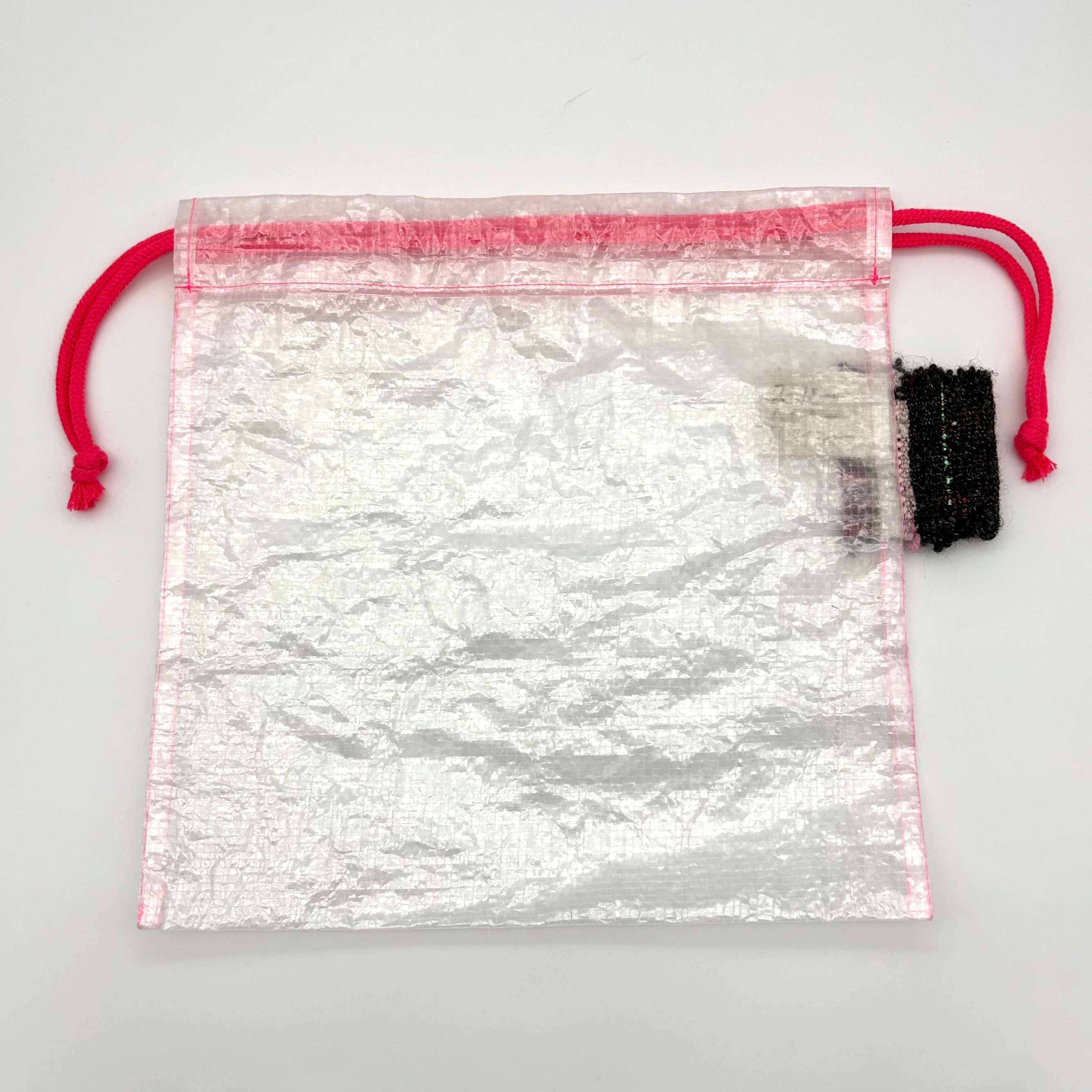 蛍光ピンク 縦25.5㎝、横25.5㎝、紐35.5cm(絞った状態)