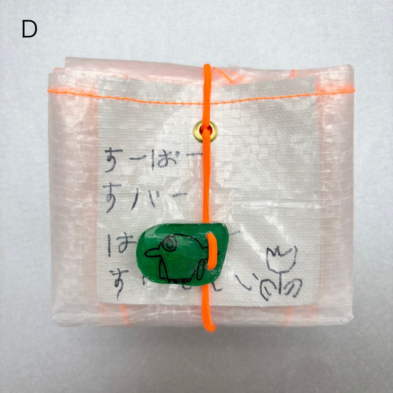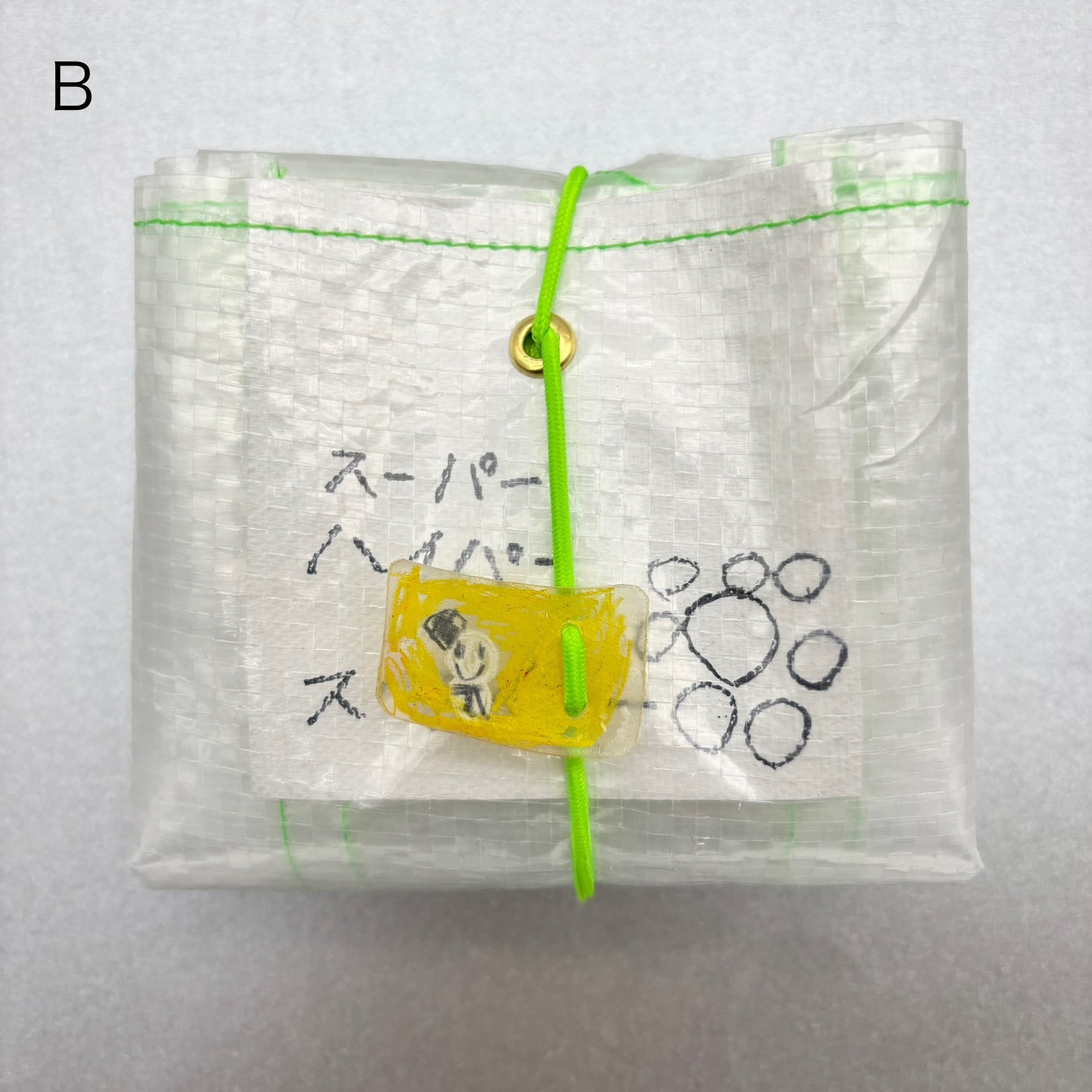 ゴムとプラバン(1点ずつ絵が異なります)が付いています。