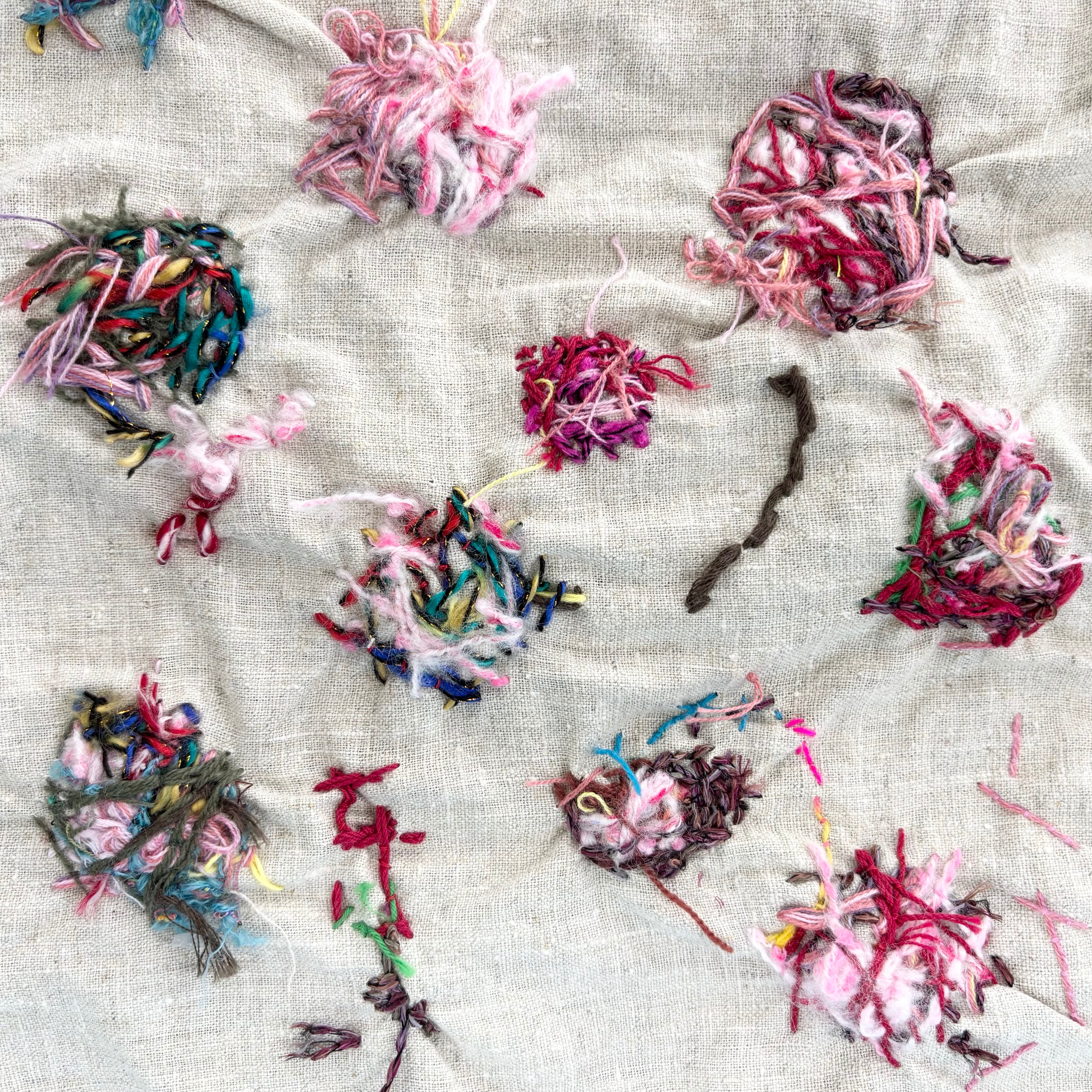 まゆみさんが刺繍された生地を使用して巾着バッグを製作ました!お話好きなまゆみさん。作業中も楽しい話しをして、笑って。。