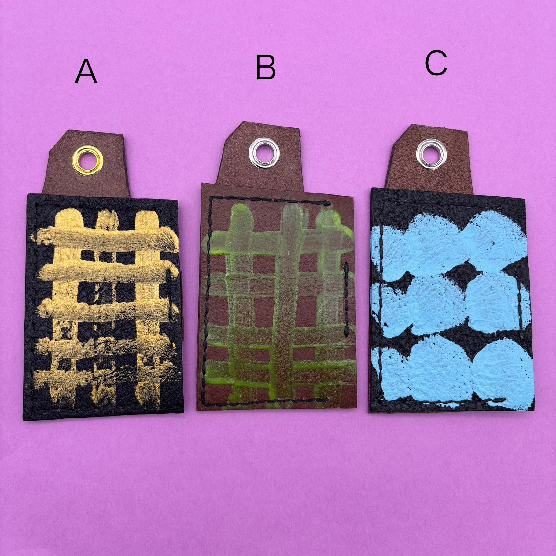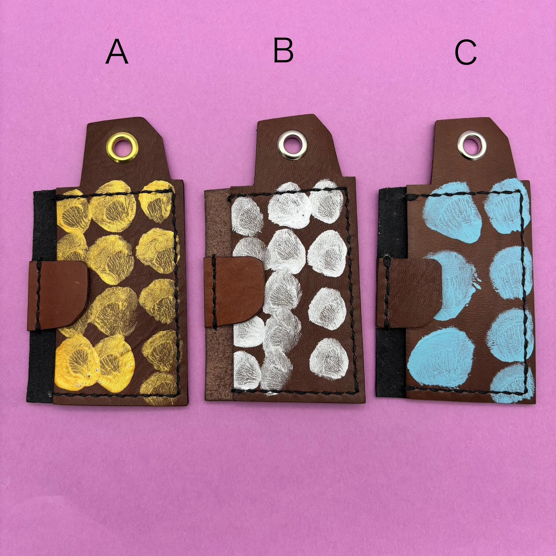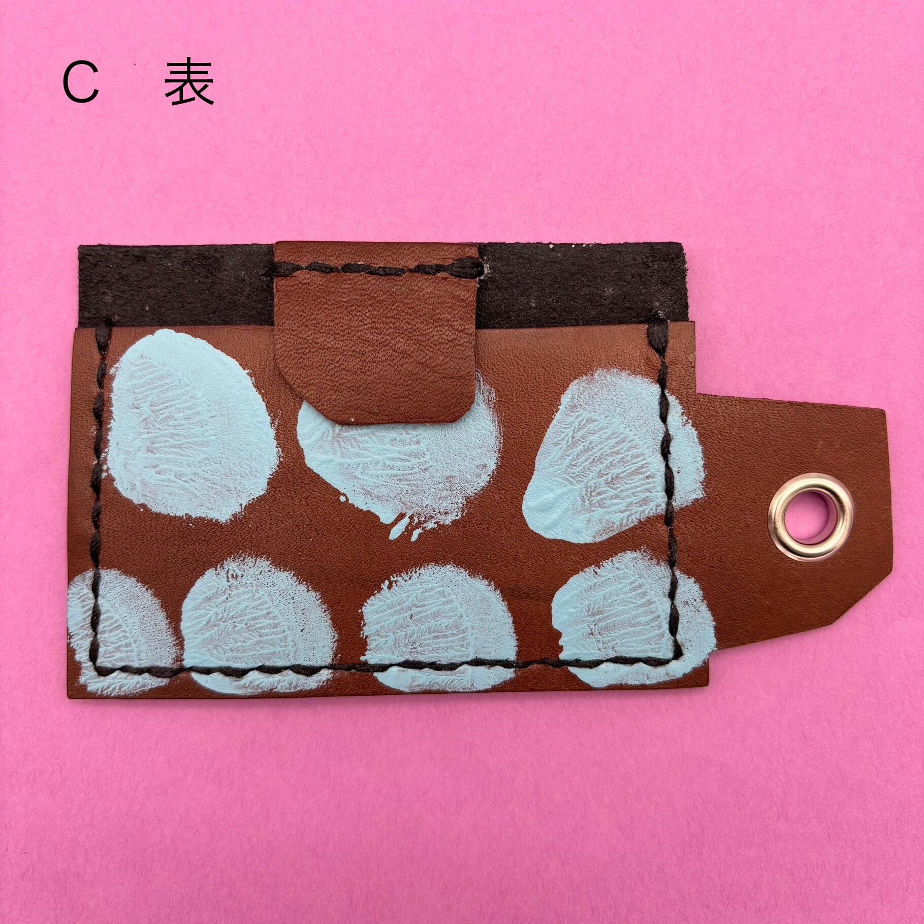 C 革はブラウン、糸はブラック、ペイントは水色