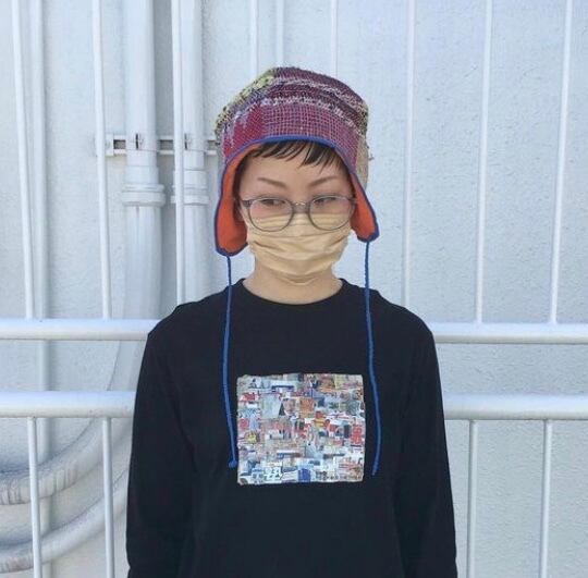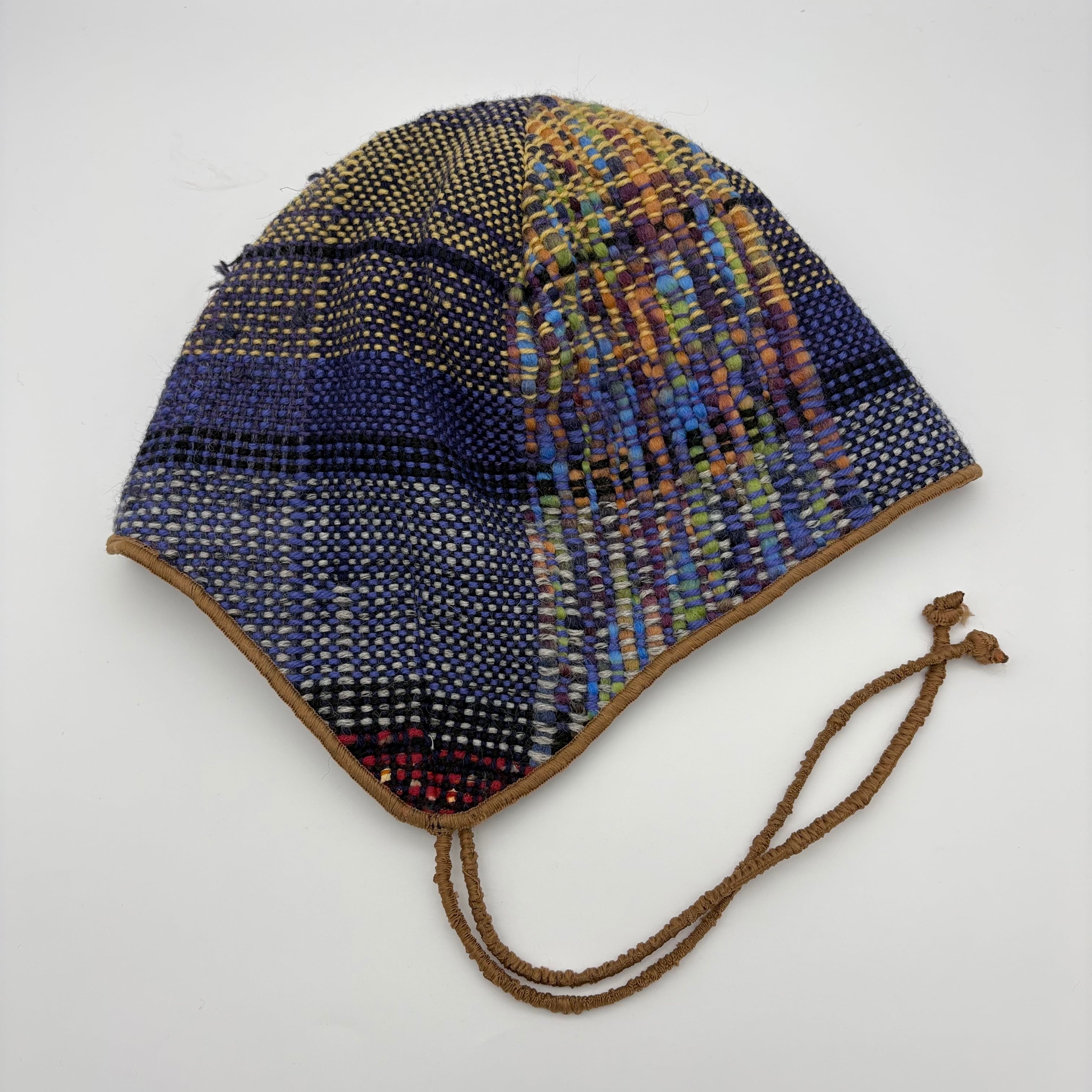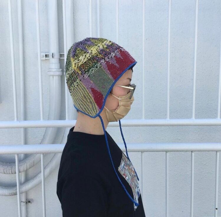 利用者さんが織られた、色とりどりの手織りをロックミシンで繋ぎ合わせ、パッチワークしています。