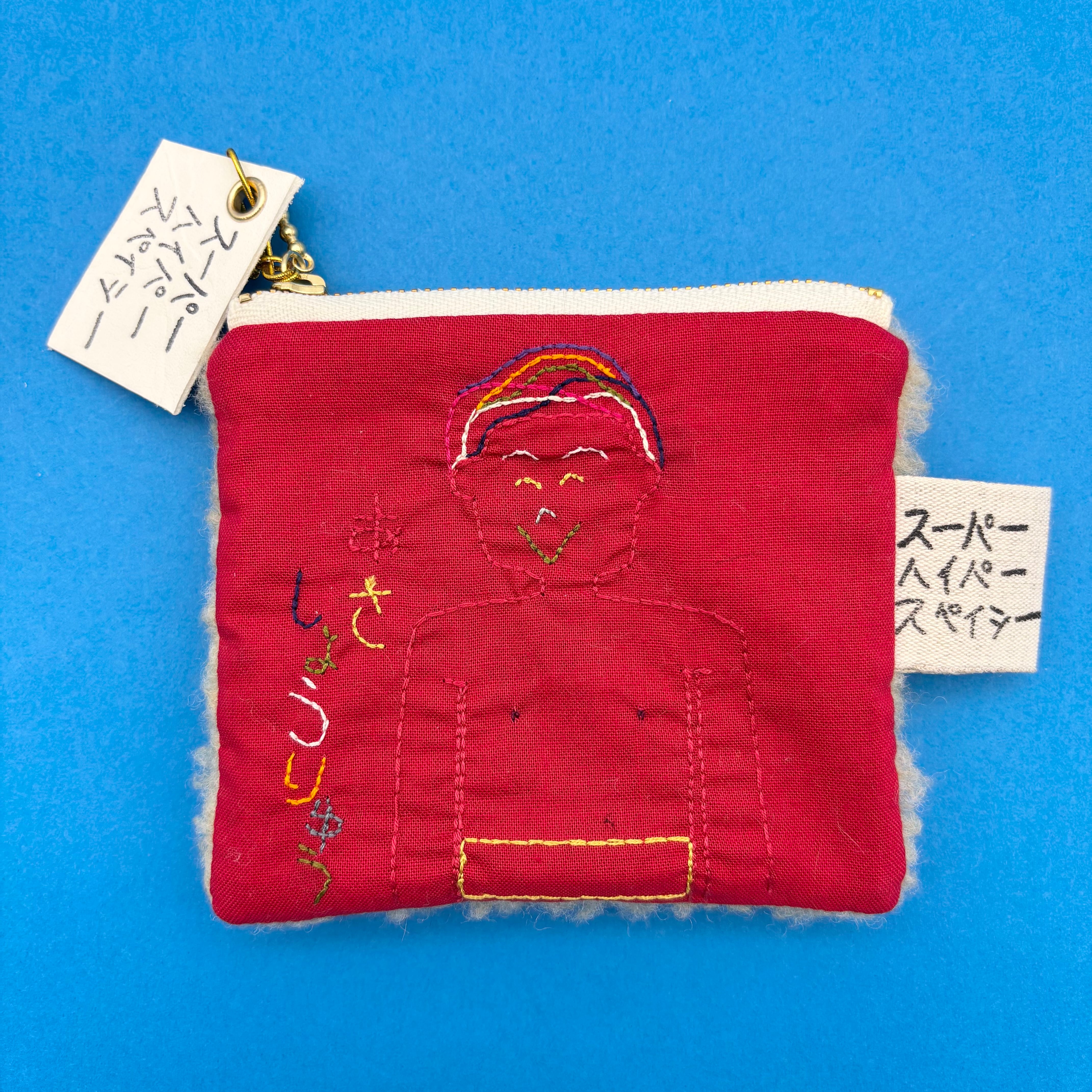 カラー◯表はレッド、裏はベージュ、中はピンク、ファスナーはホワイト