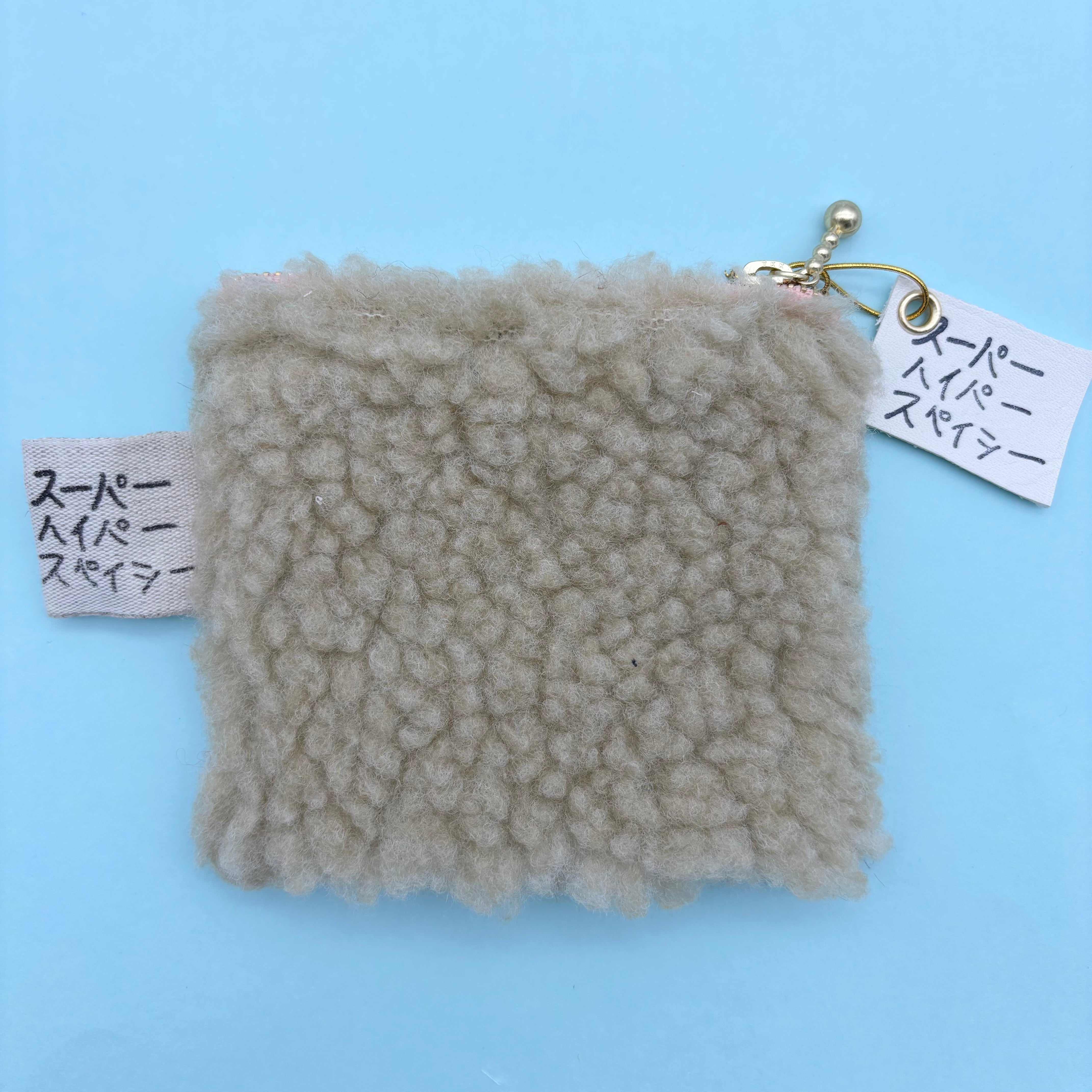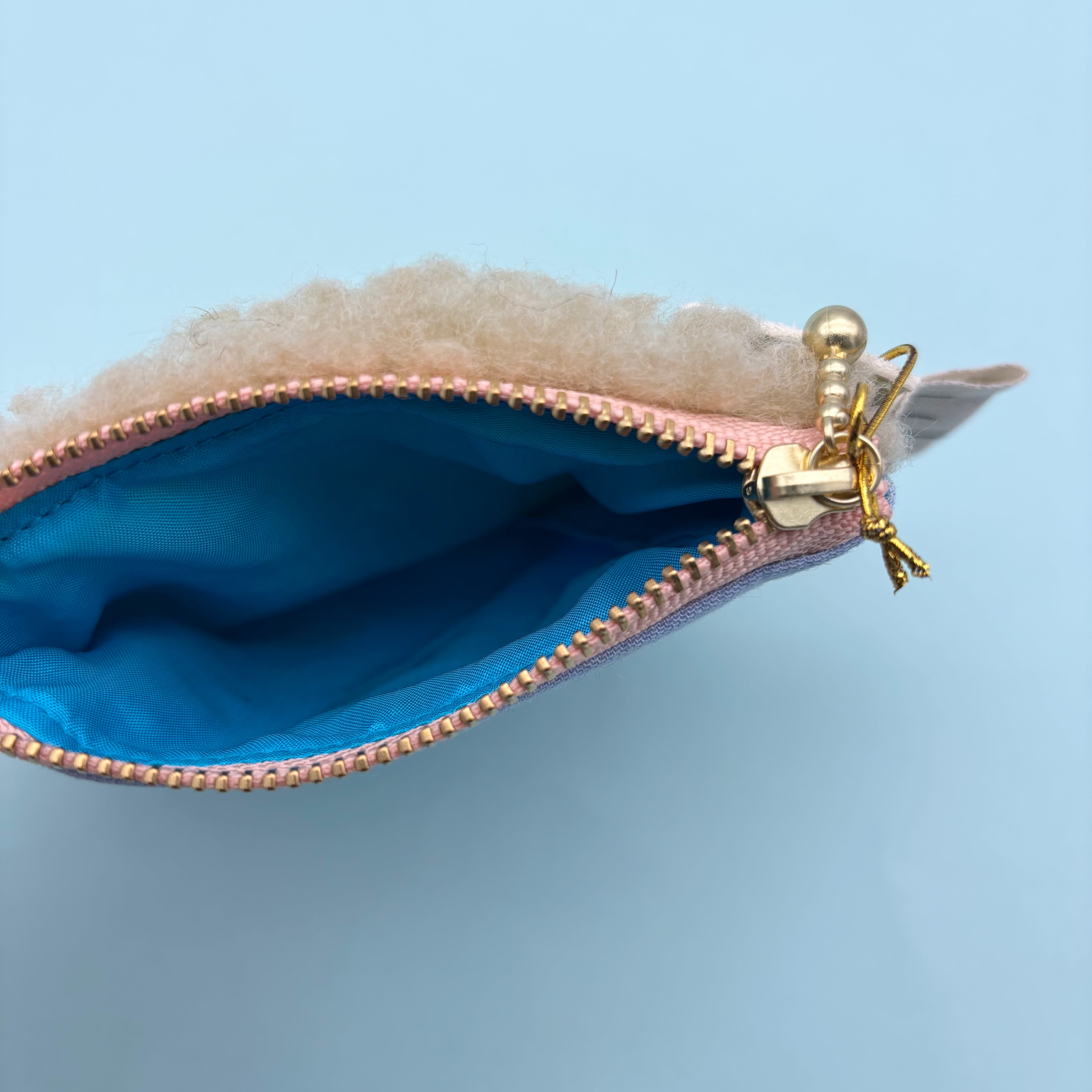 カラー◯表は水色、裏はベージュ、中は水色、ファスナーはサーモンピンク