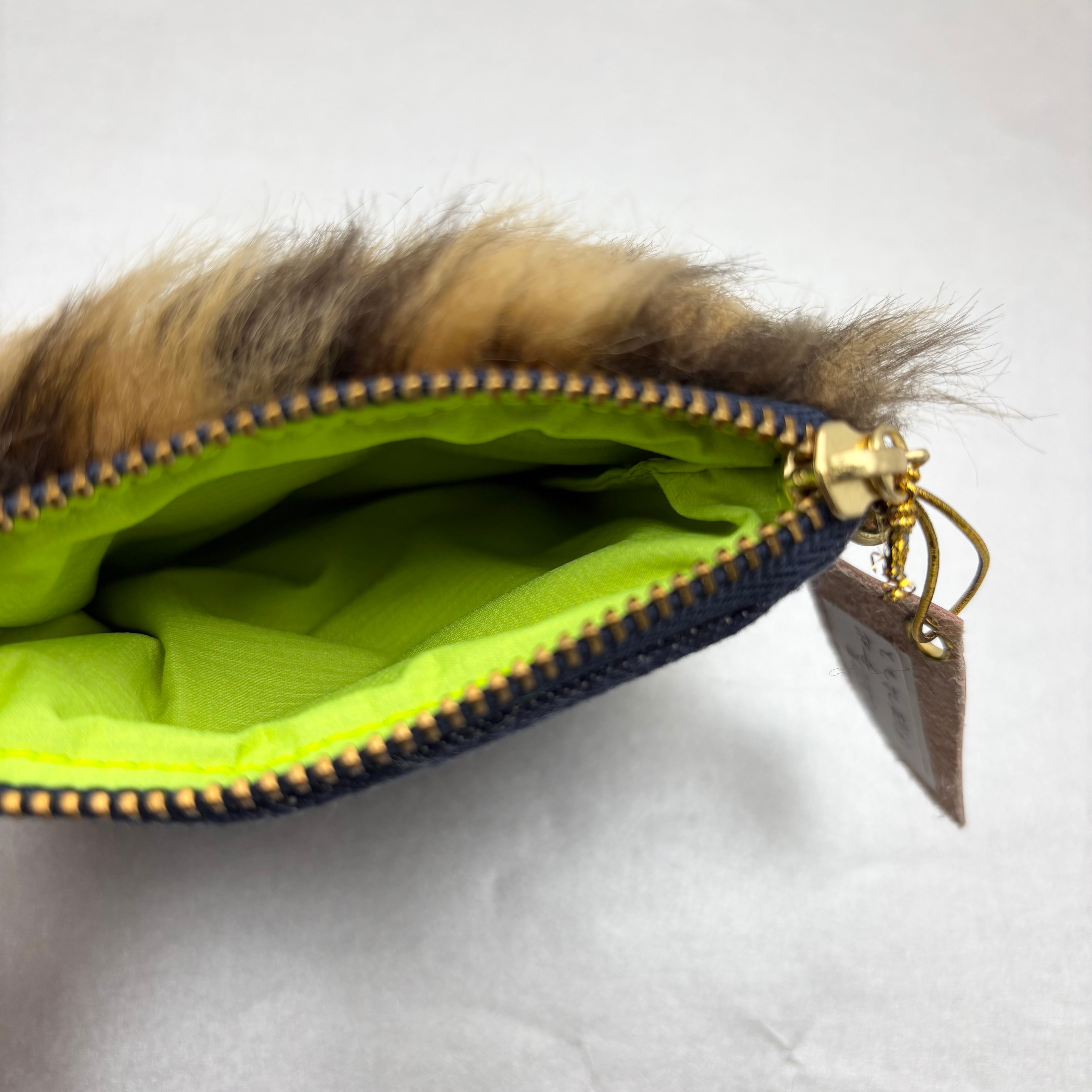 カラー◯表は紺、裏はベージュとブラウン、中は蛍光イエロー、ファスナーは紺