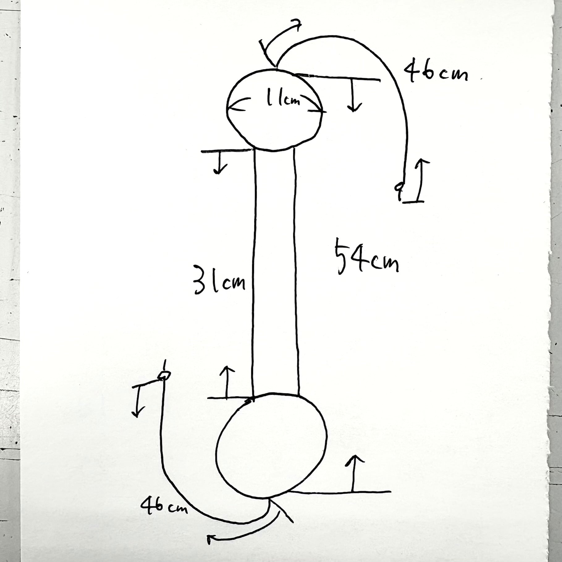 サイズ○全体の長さ54cm、耳にあてる円盤直径11cm、紐46cm、頭頂部にあたる織り31cm