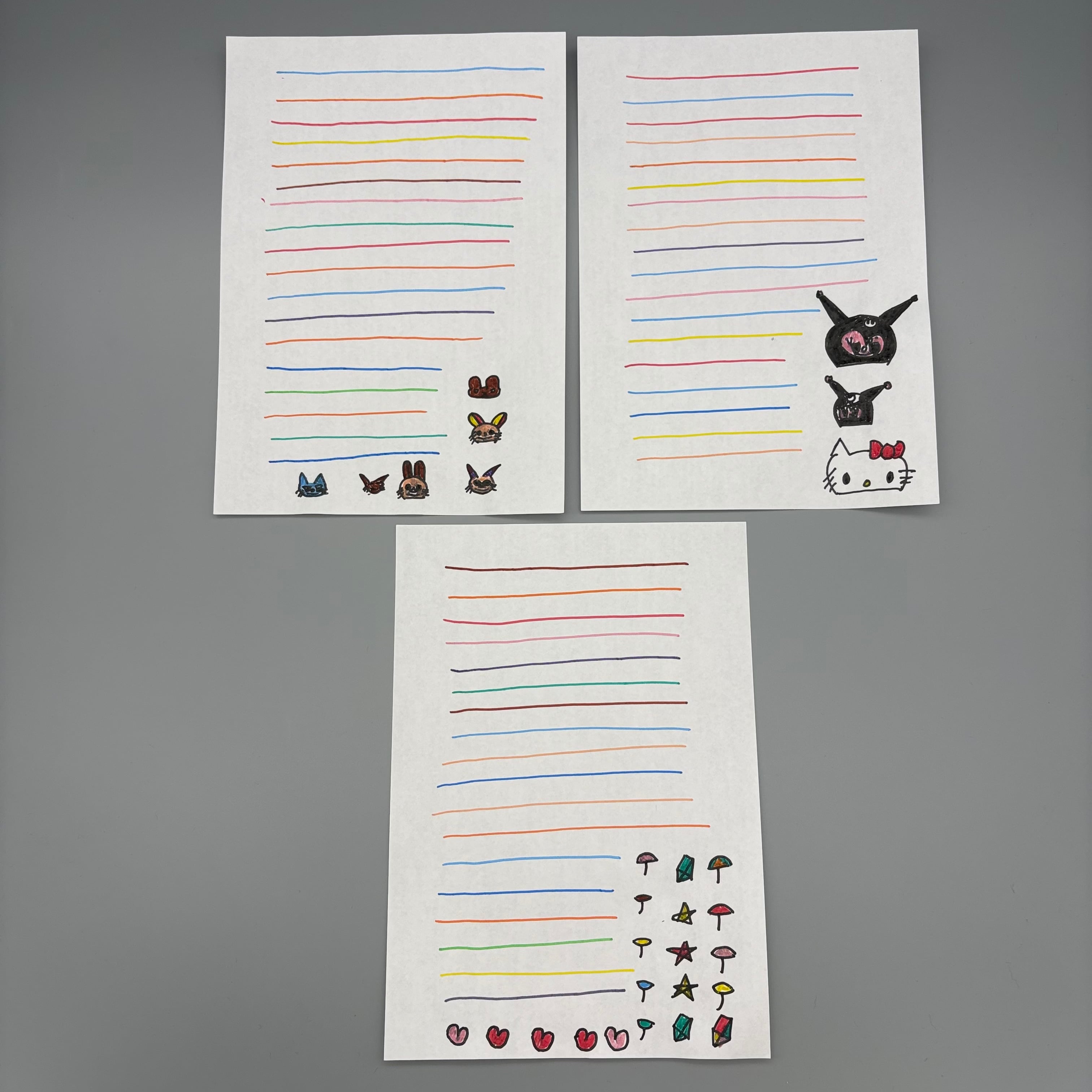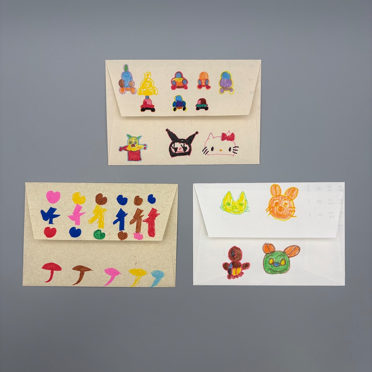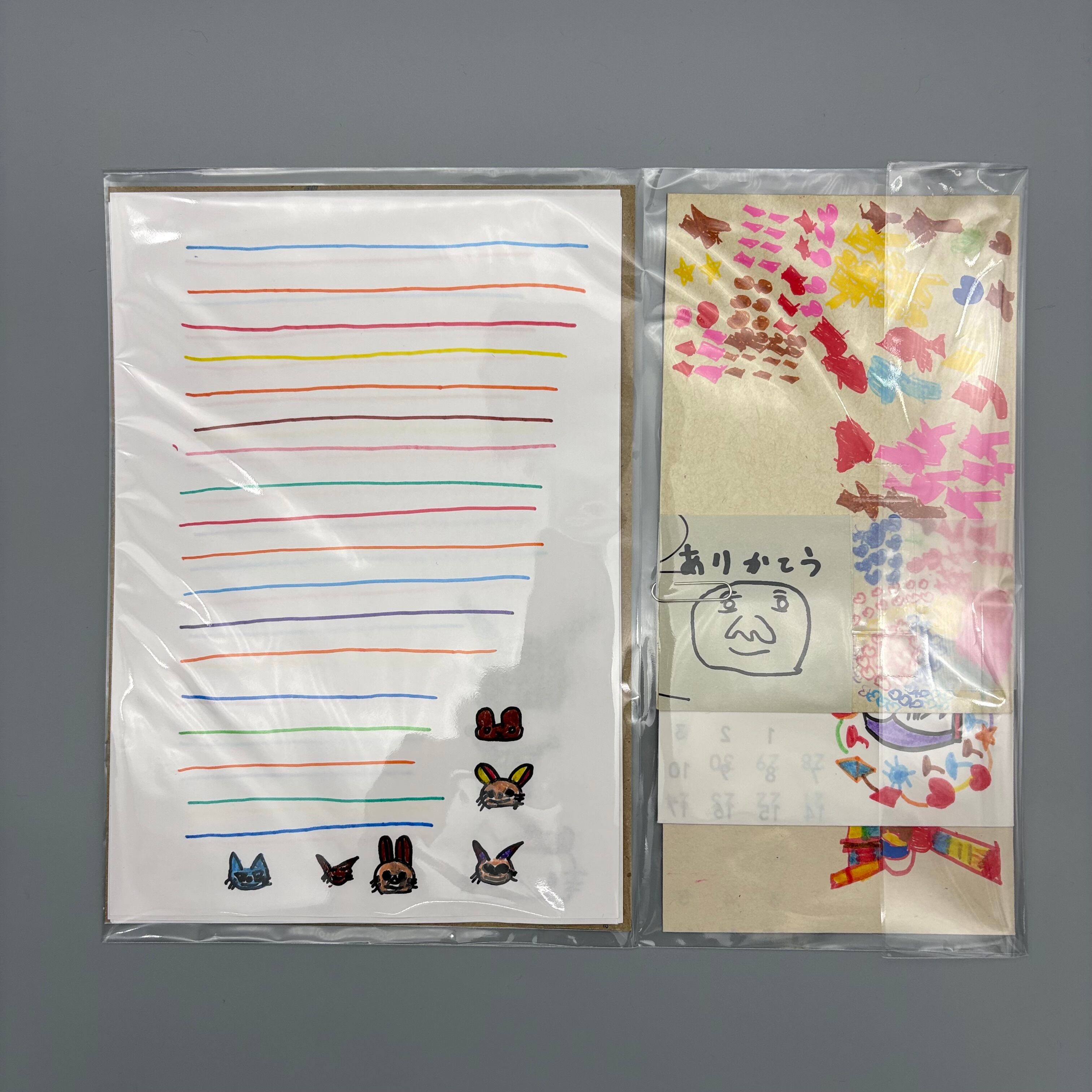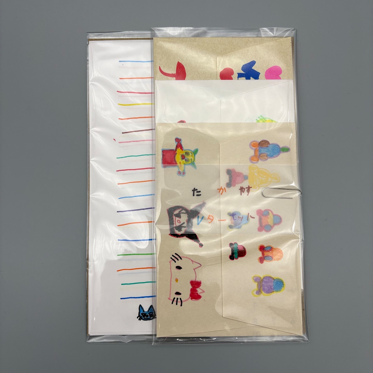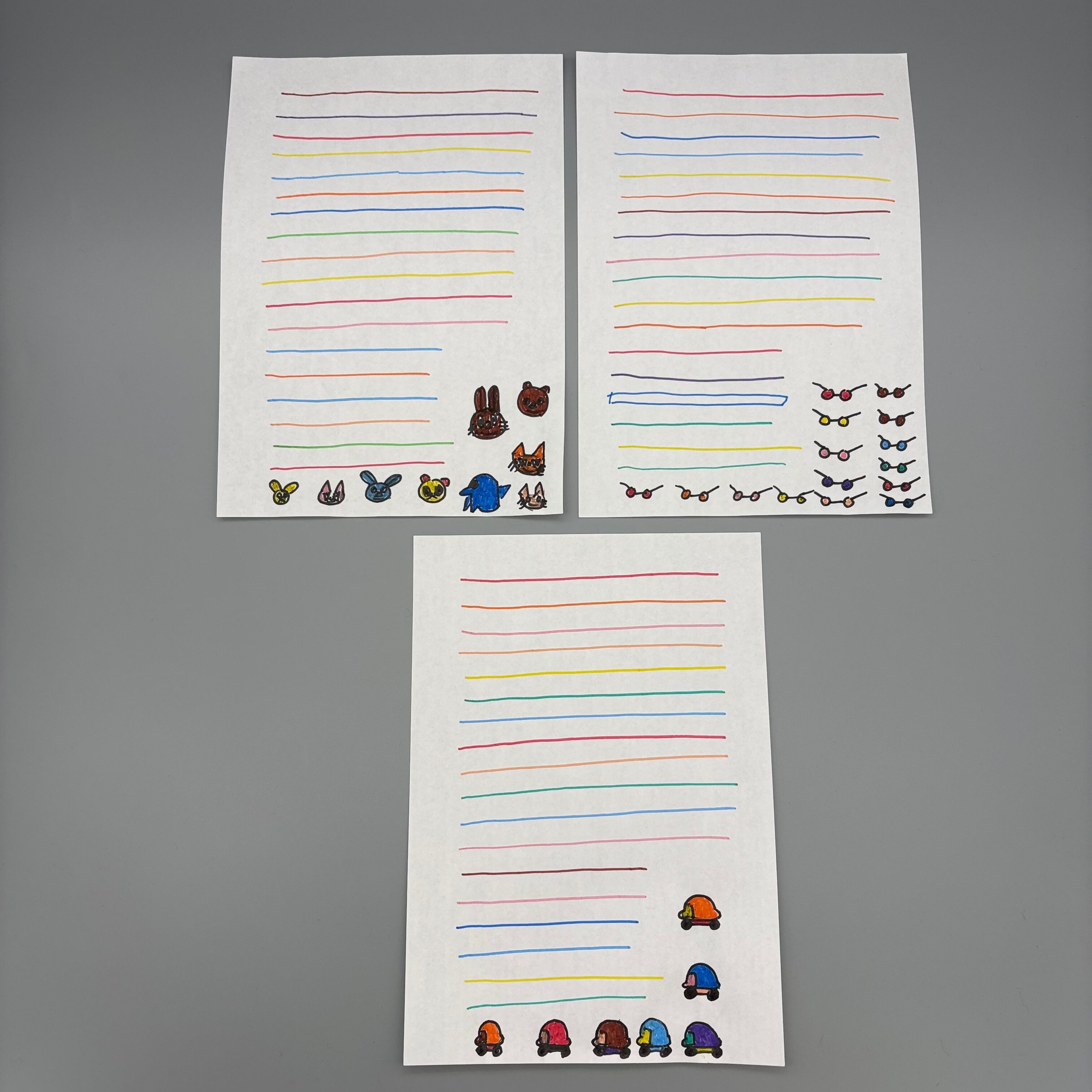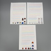 封筒3枚、便箋6枚、宛名シール3枚、シール3枚