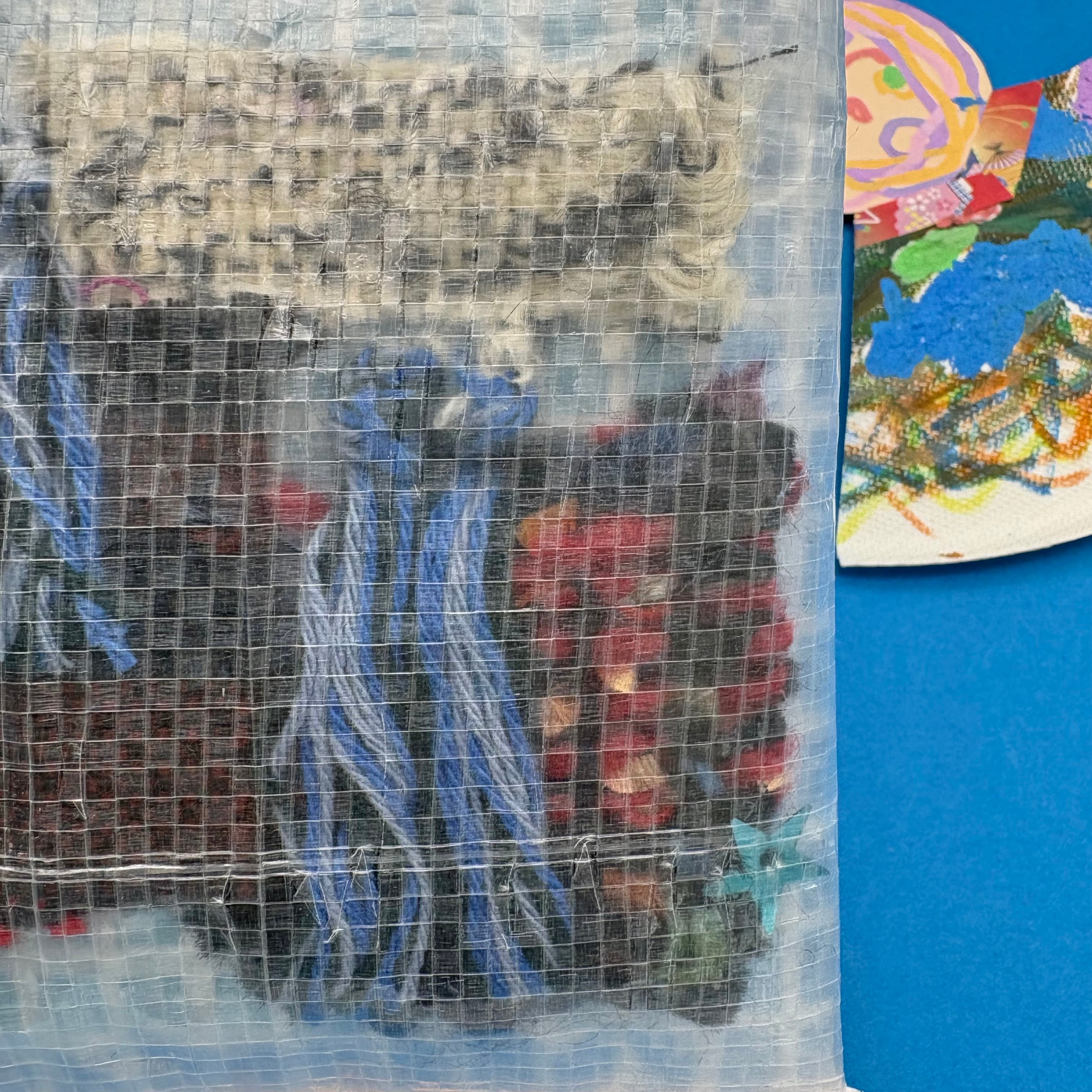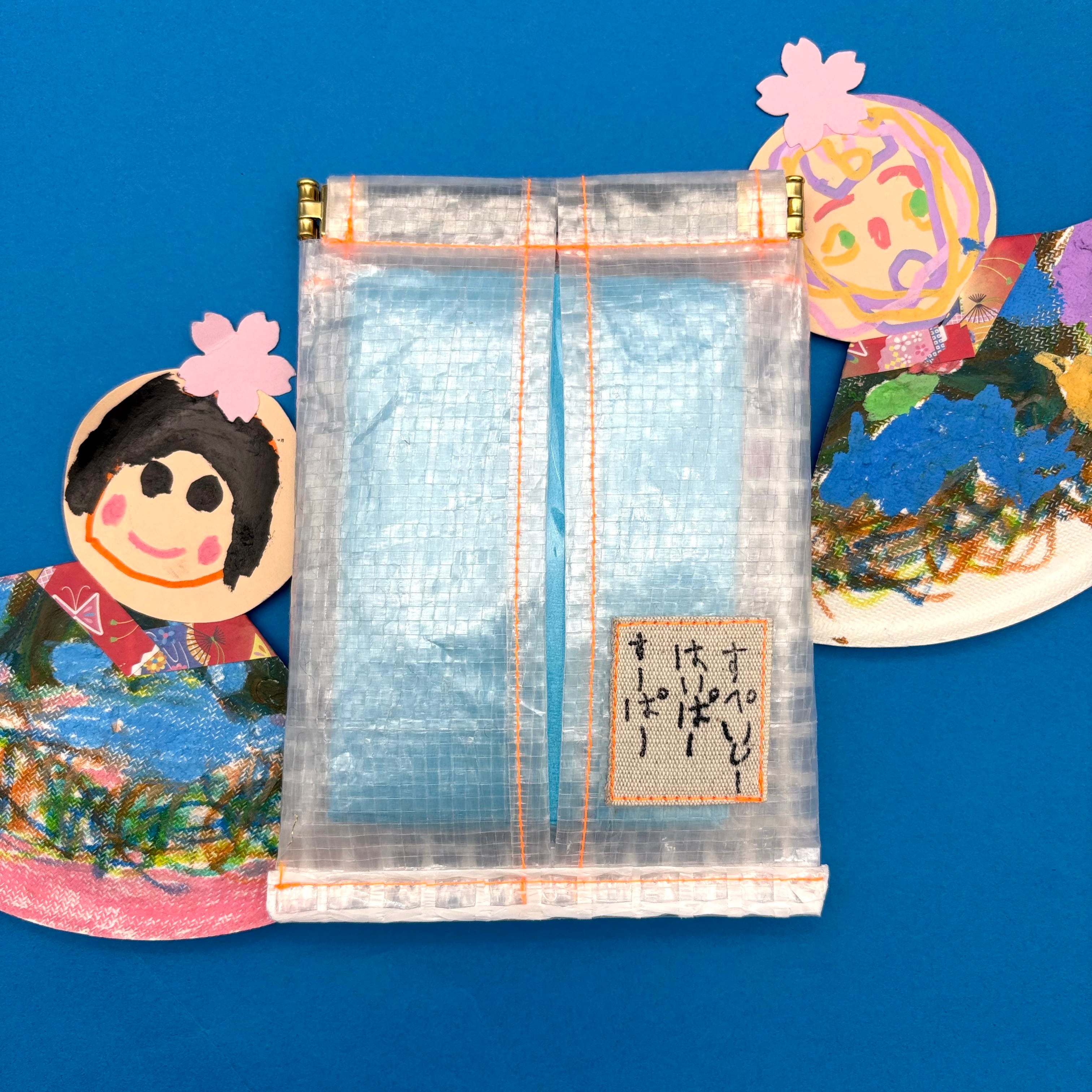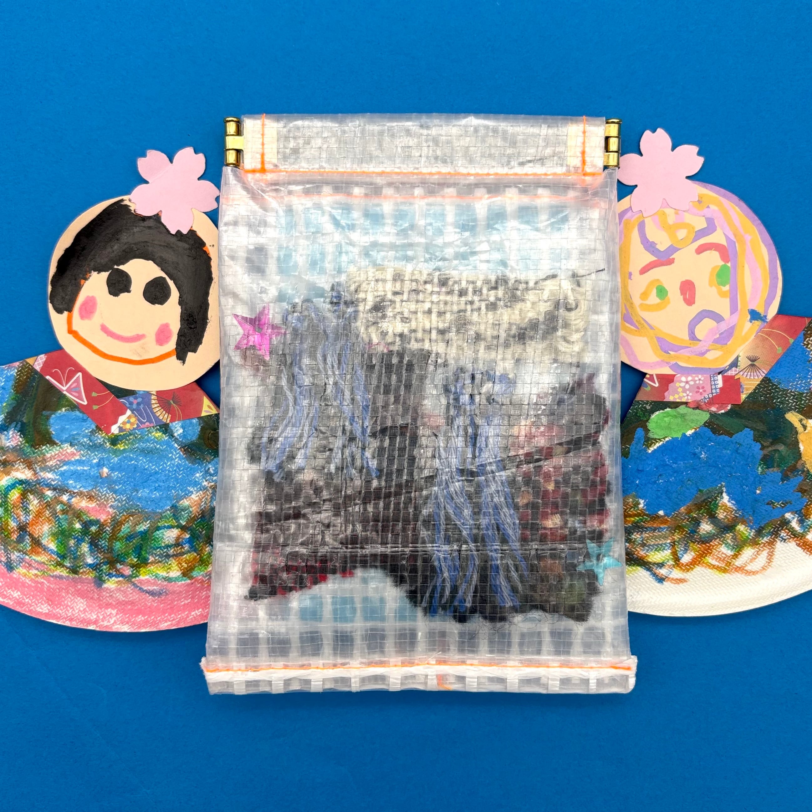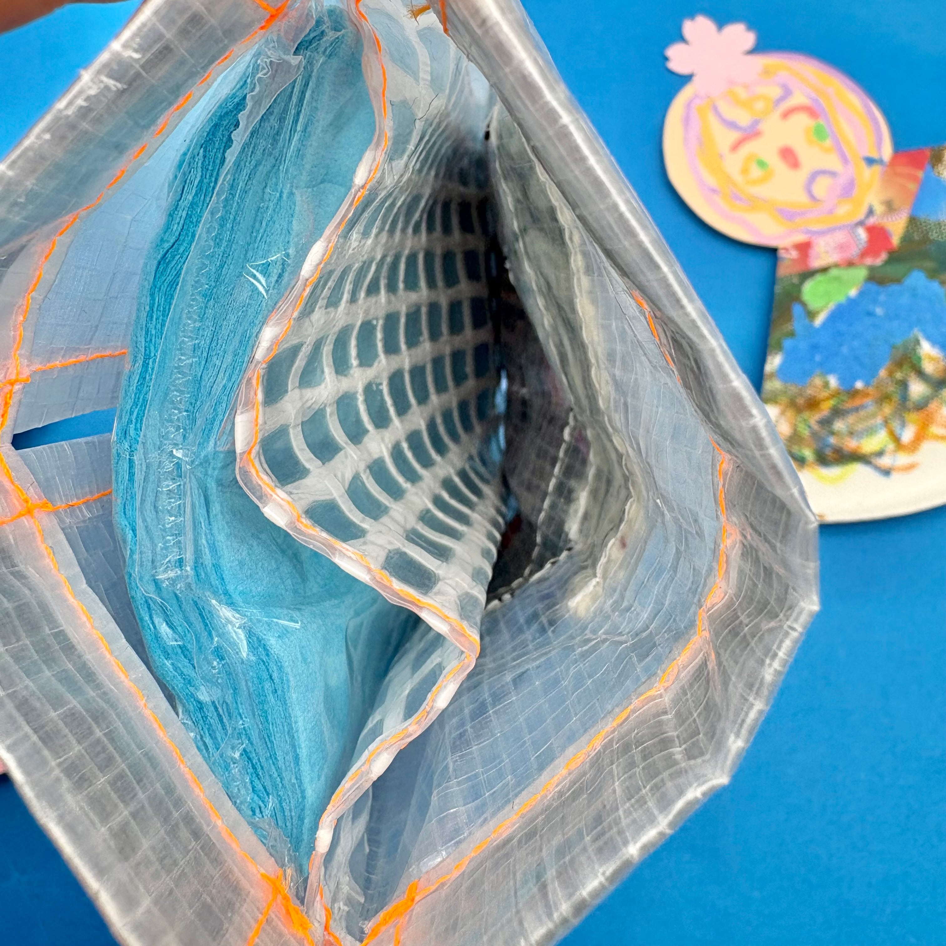 素材○ポリエチレン、手織り、水色のティッシュ付き