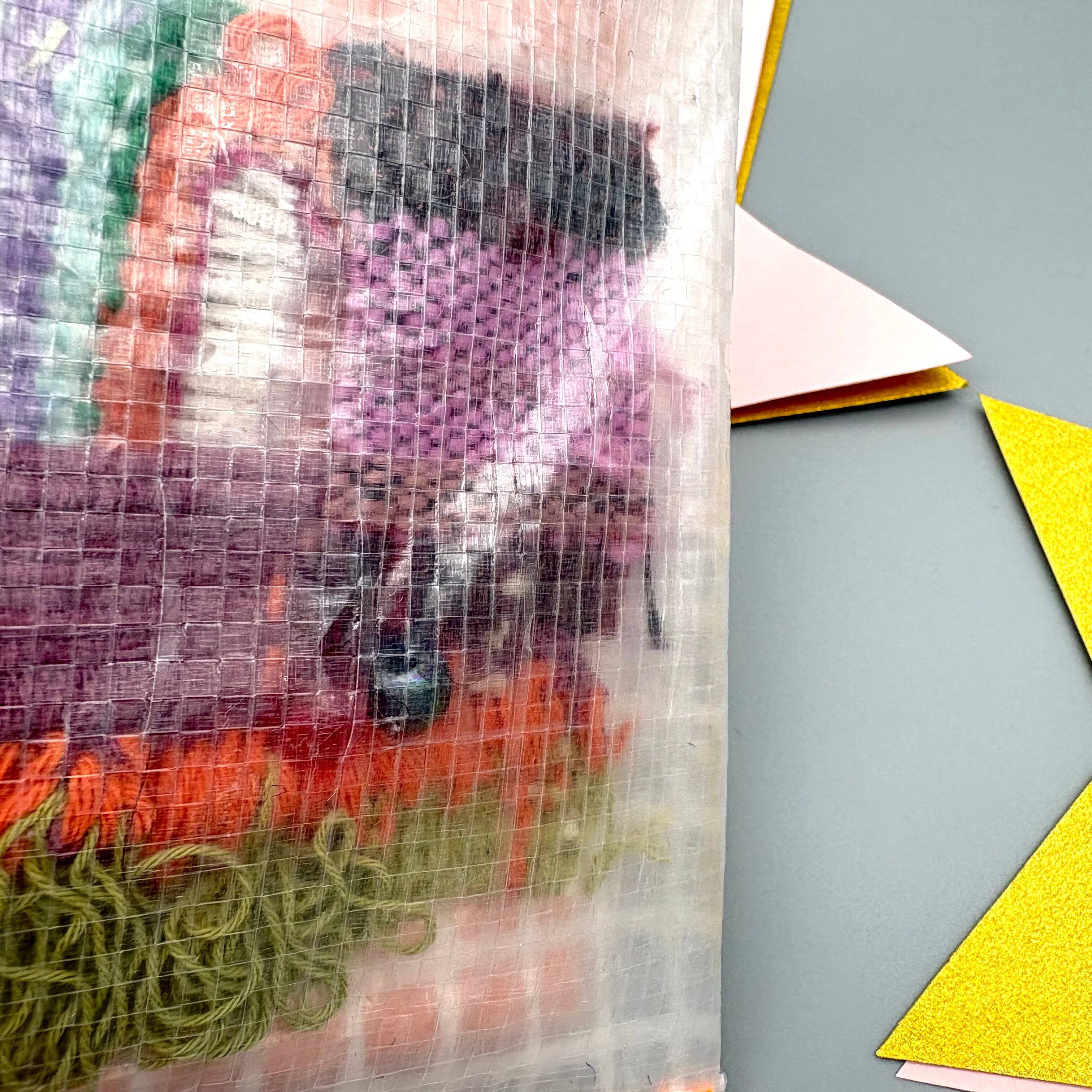 素材○ポリエチレン、手織り、水色のティッシュ付き