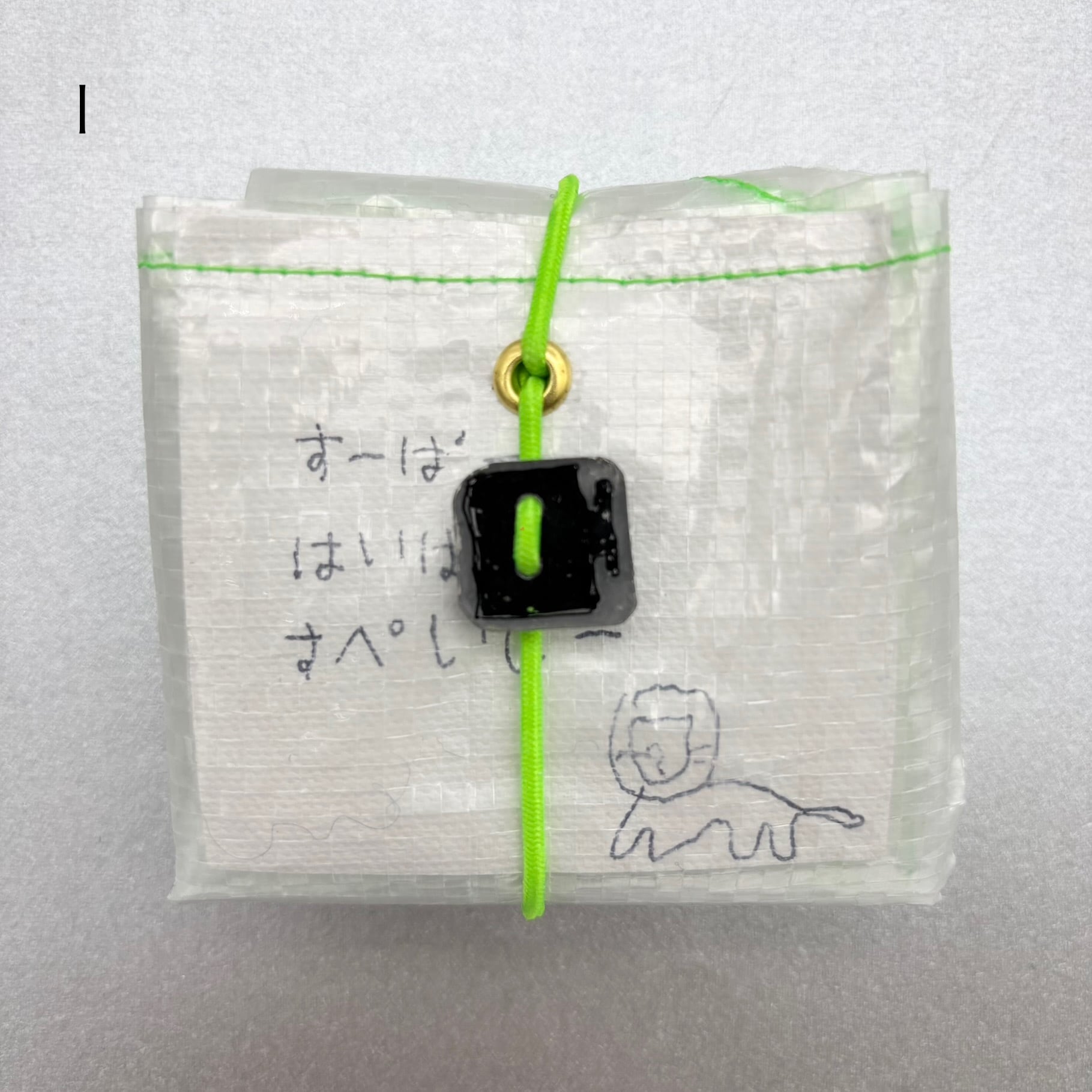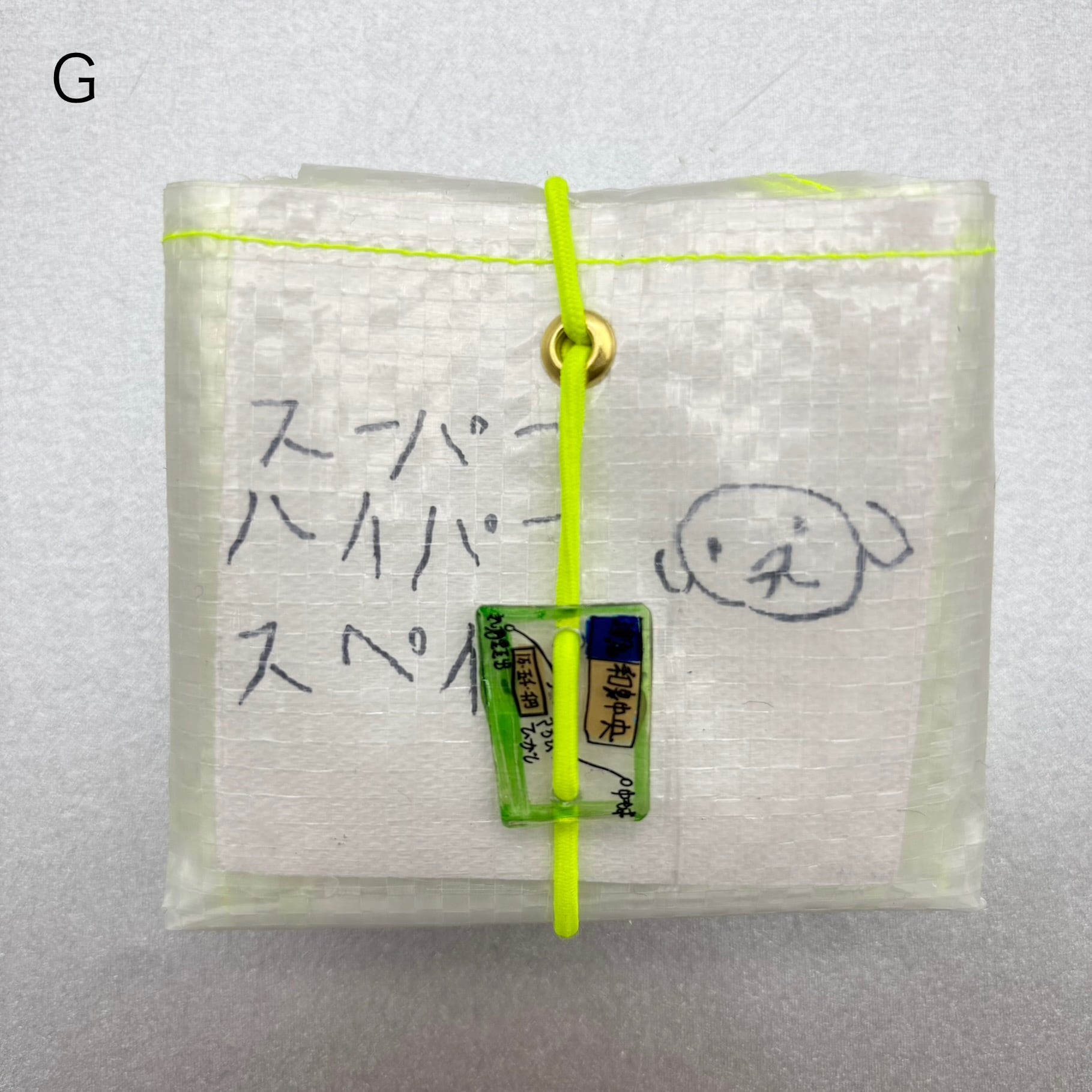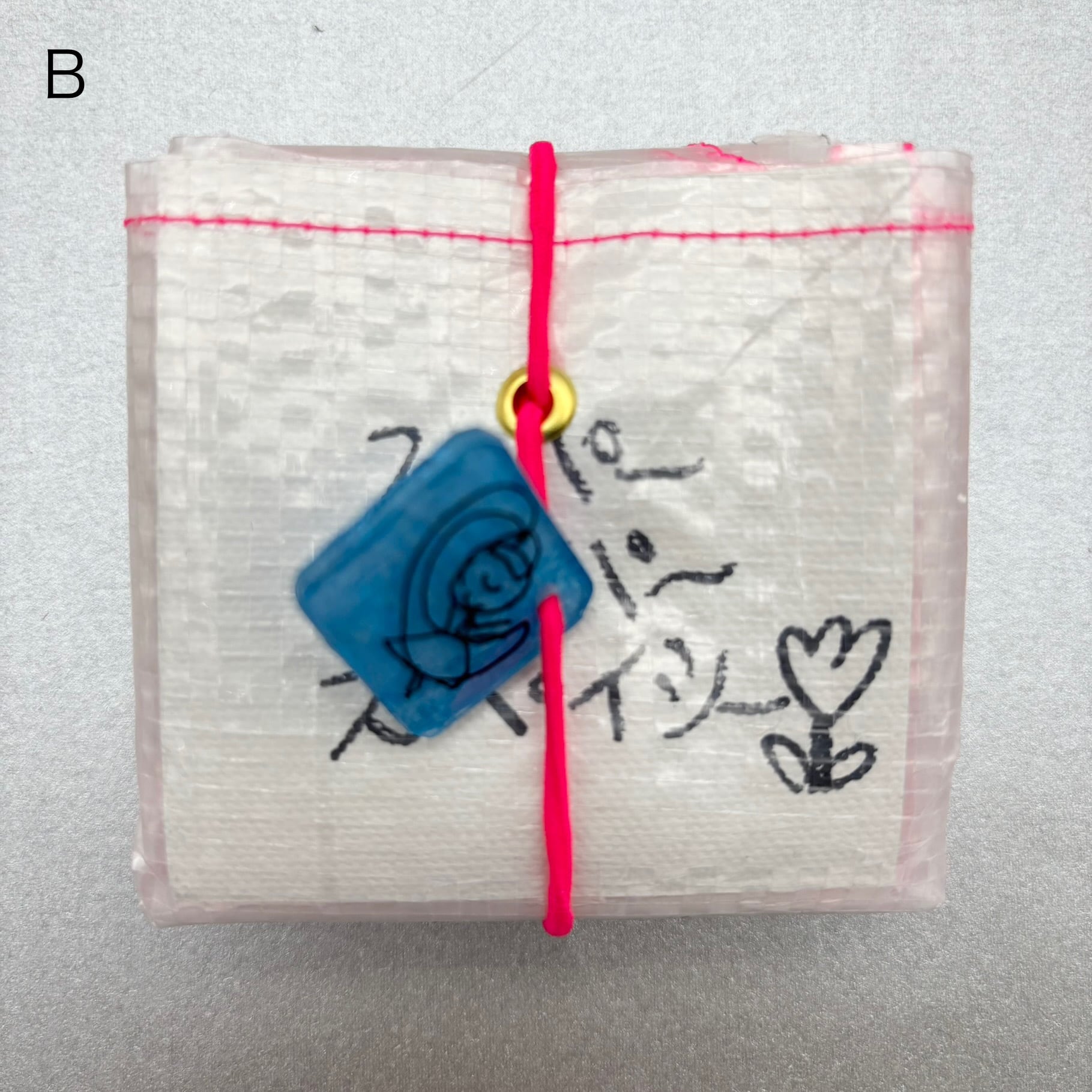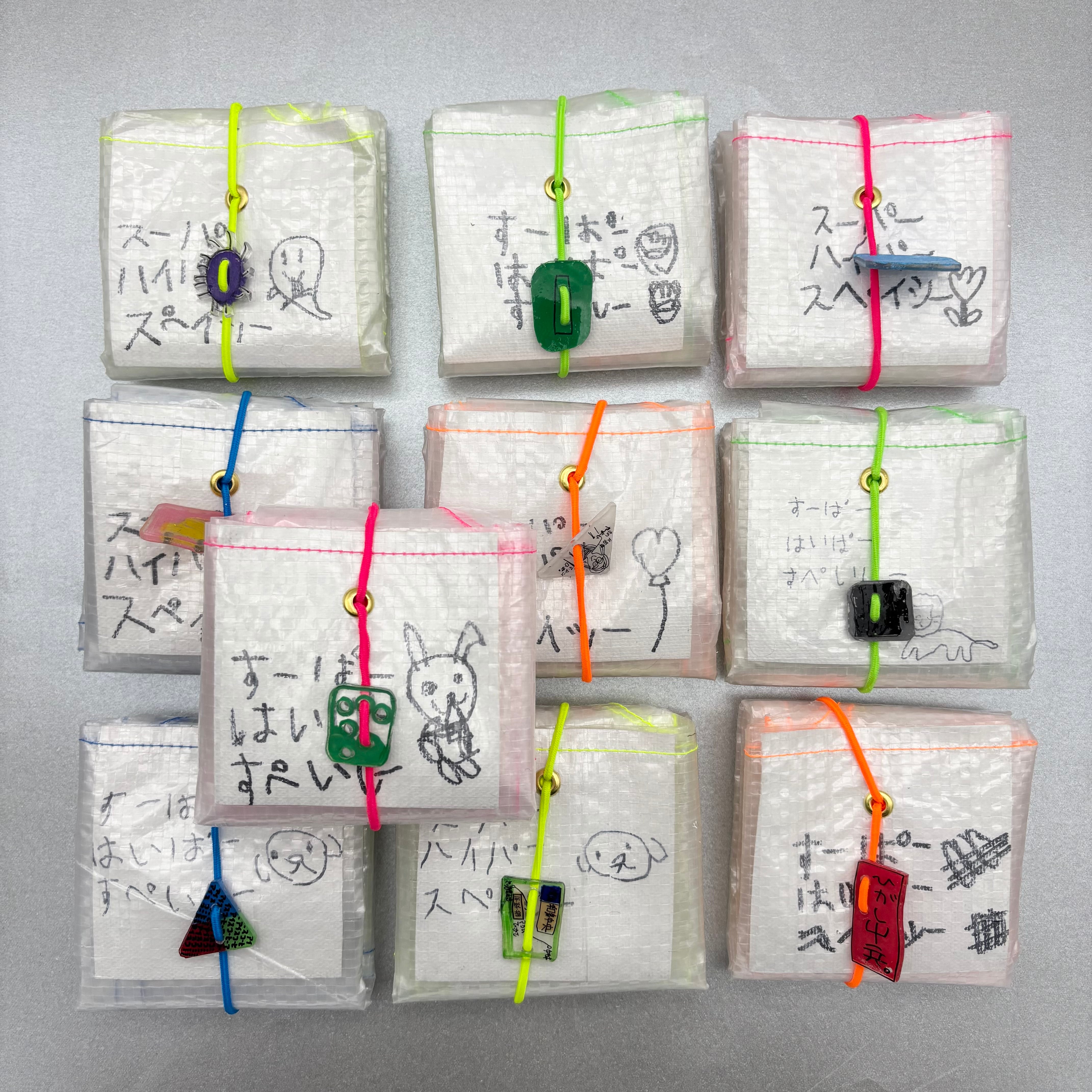 ゴムとプラバン(1点ずつ絵が異なります)が付いています。
