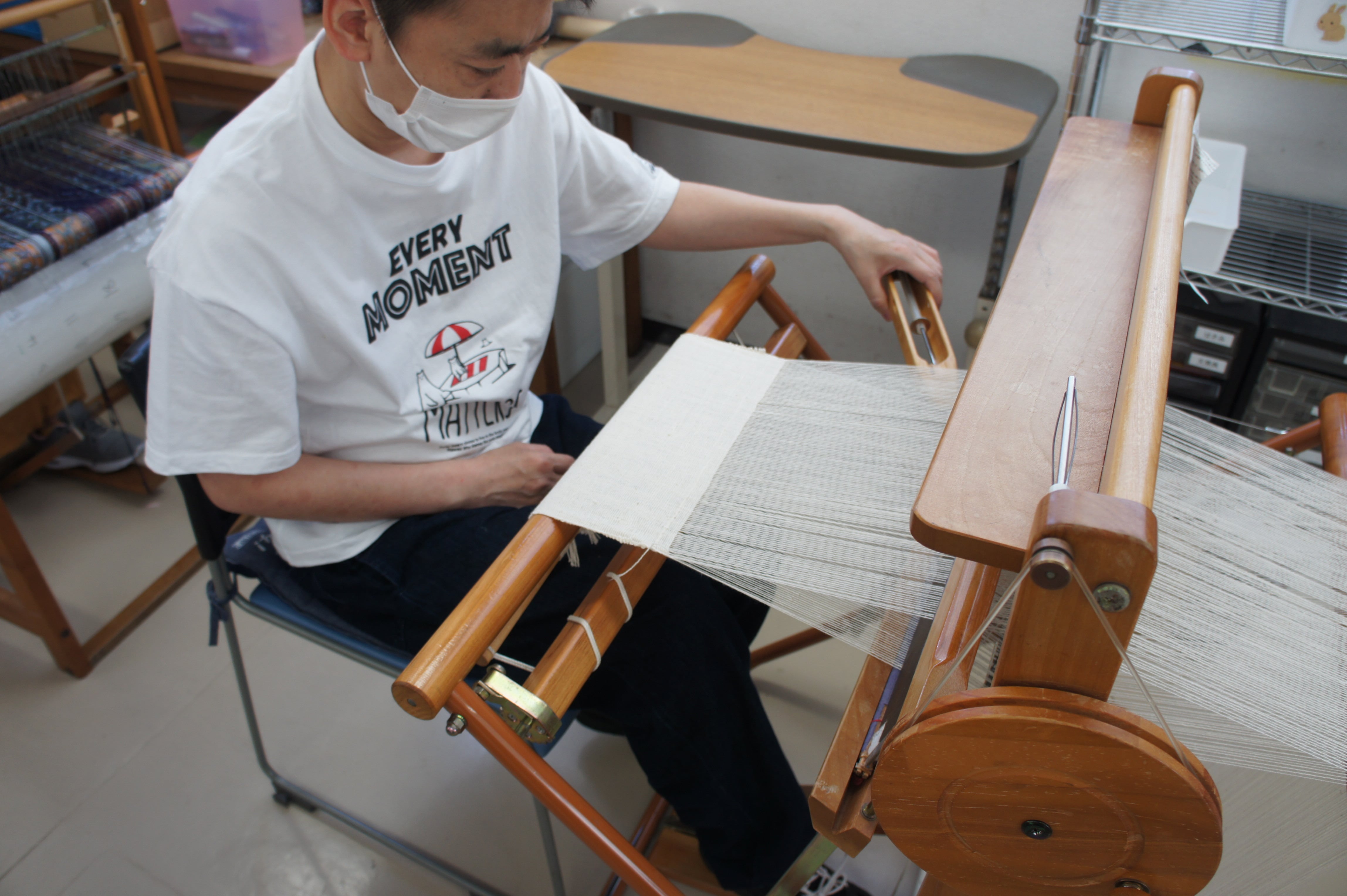 いつもの西淡路希望の家の楽しい織りとはまた違う、日々の生活の中に溶け込み、洗濯もでき、気軽に使えて、使っていて嬉しくて気持ちの良いものを作りたい。利用者の方が織られた判蚊知をポケットの中に入れて、お守りみたいな存在になりますように。