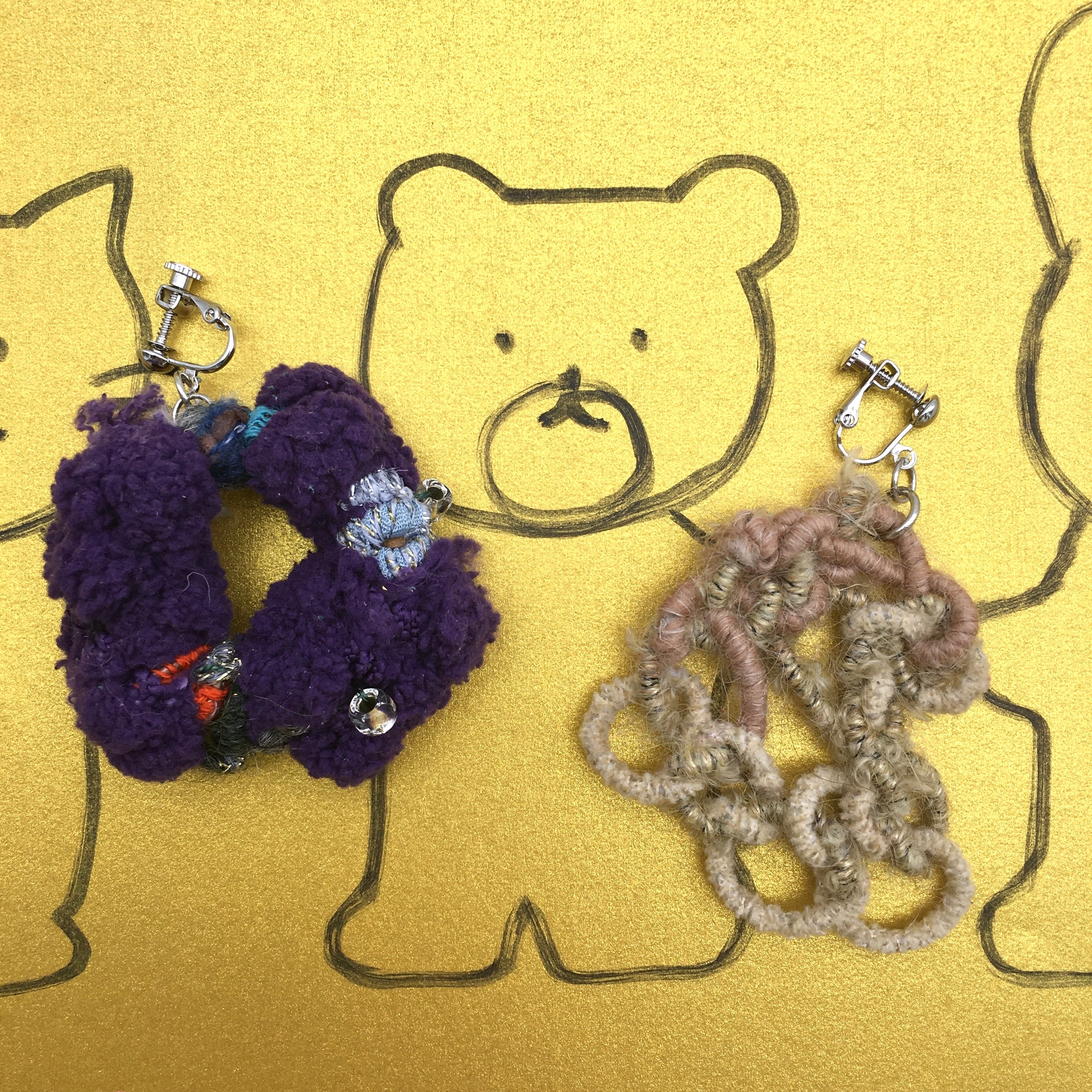 ワイヤーに糸を巻いて製作したイヤリングです。