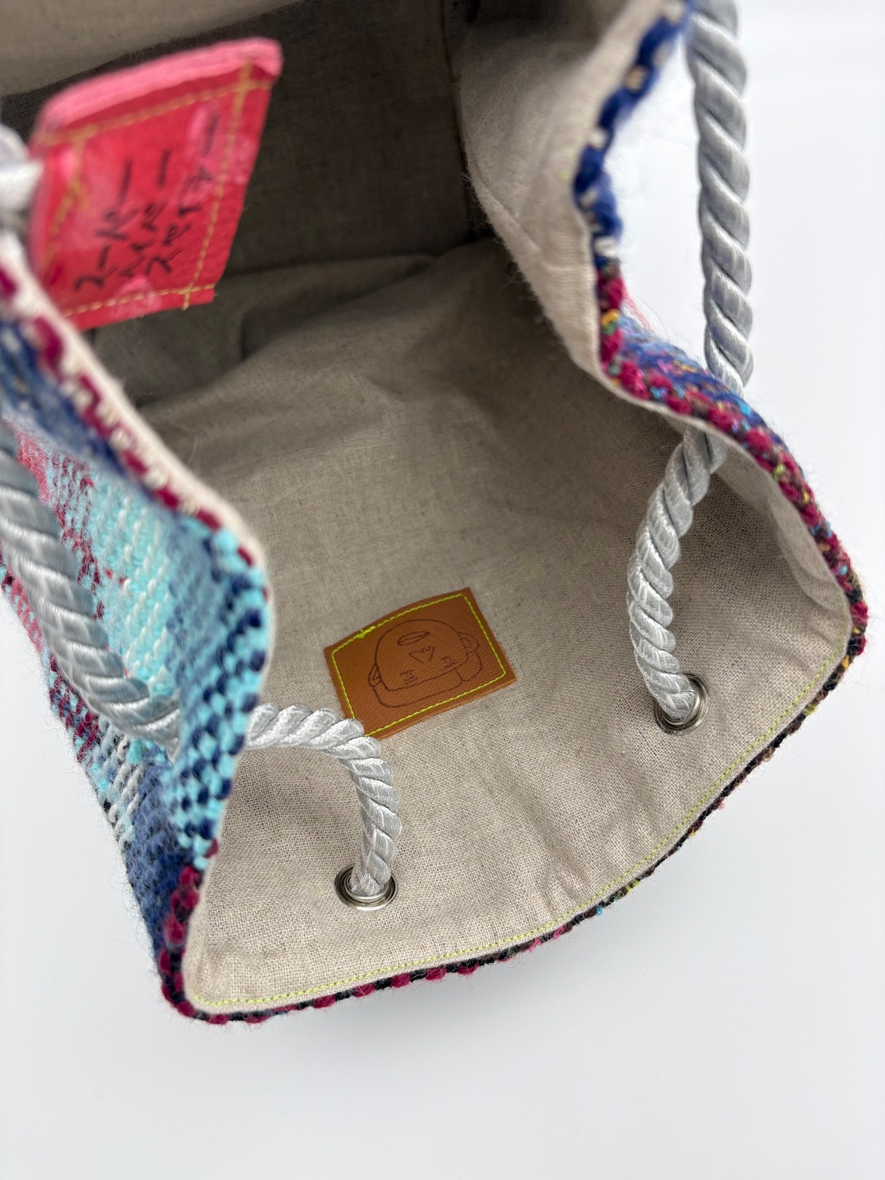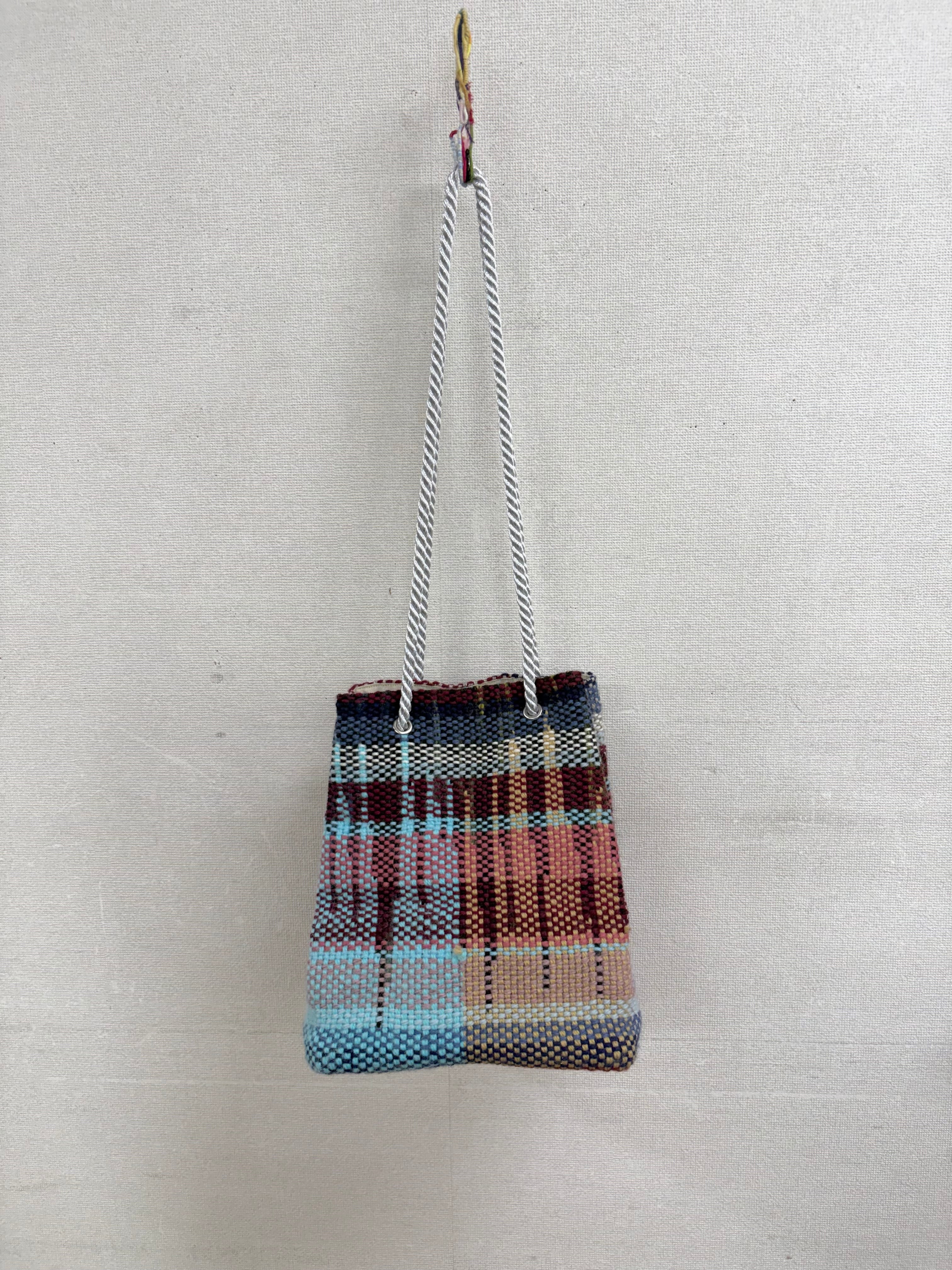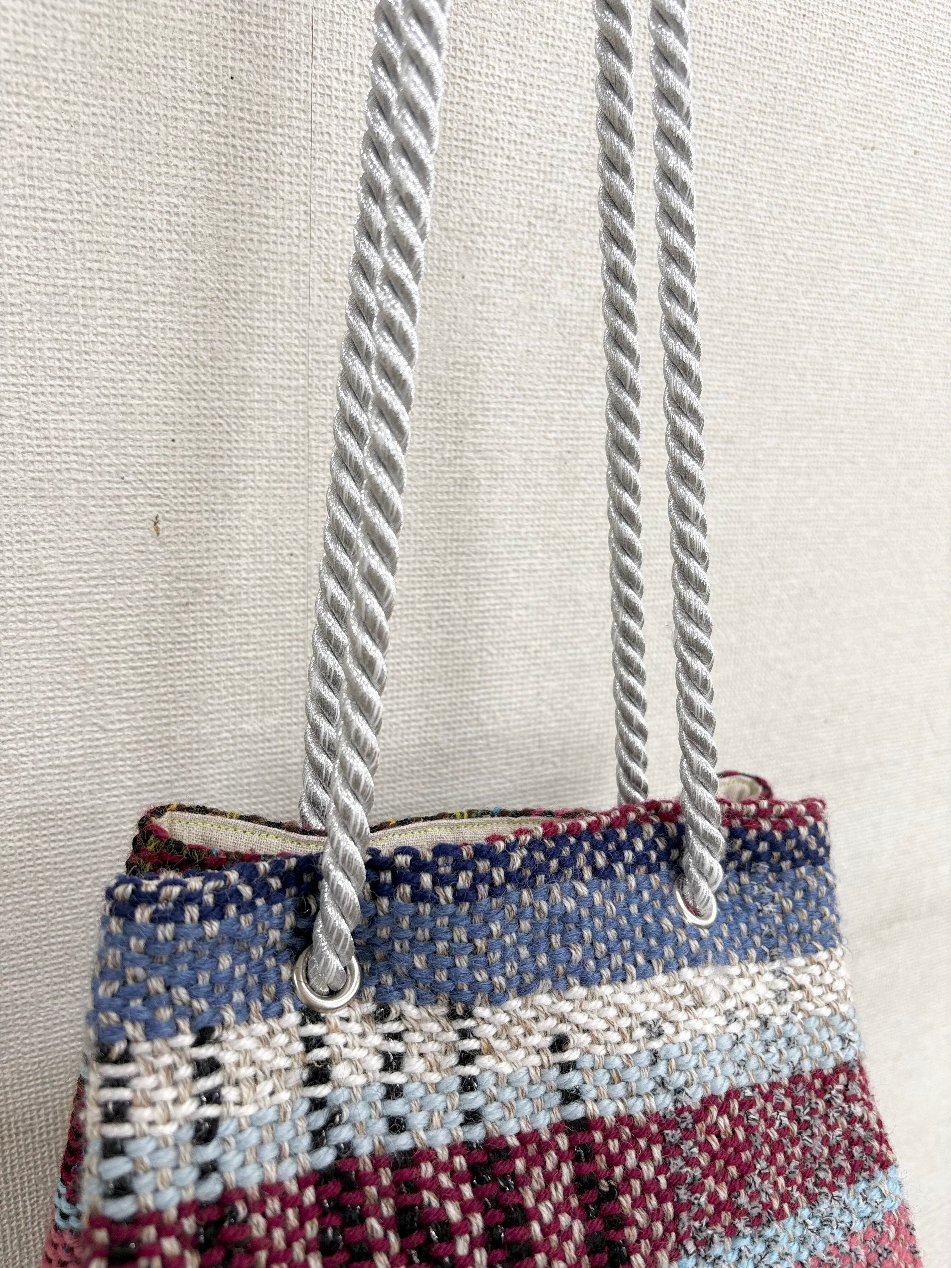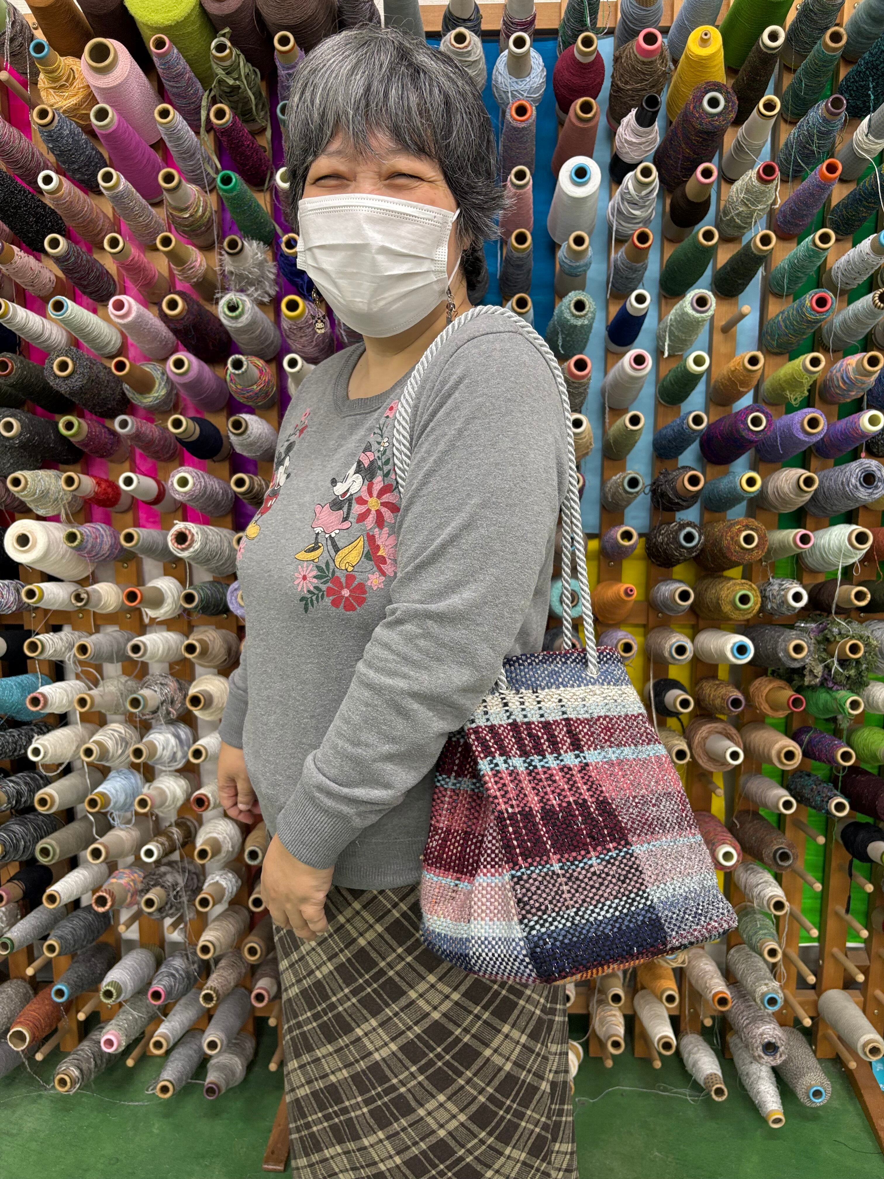 利用者さんが織られた反物を使った巾着ショルダーです☆
