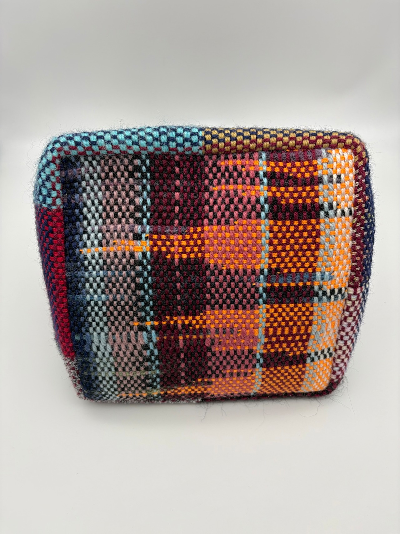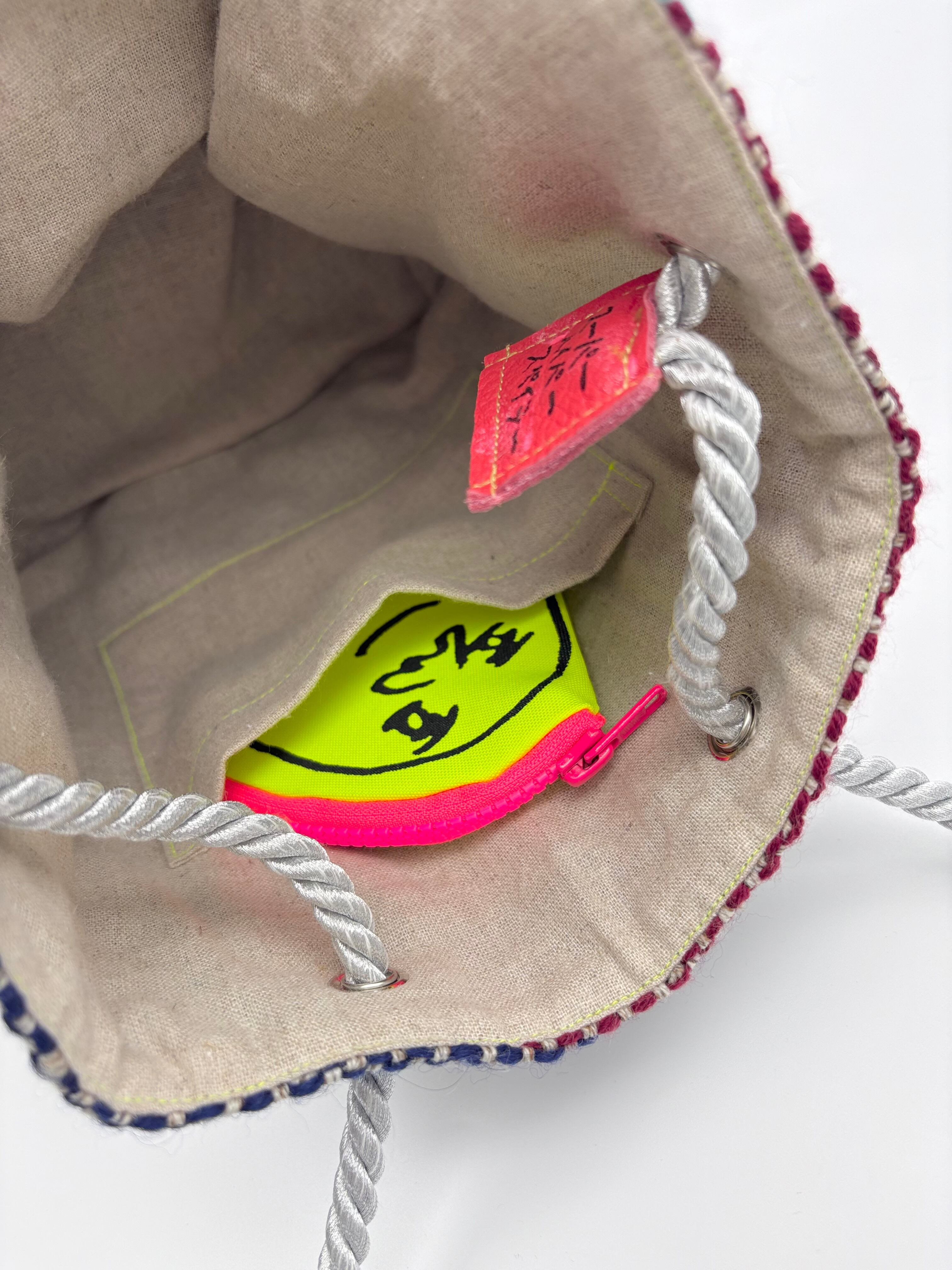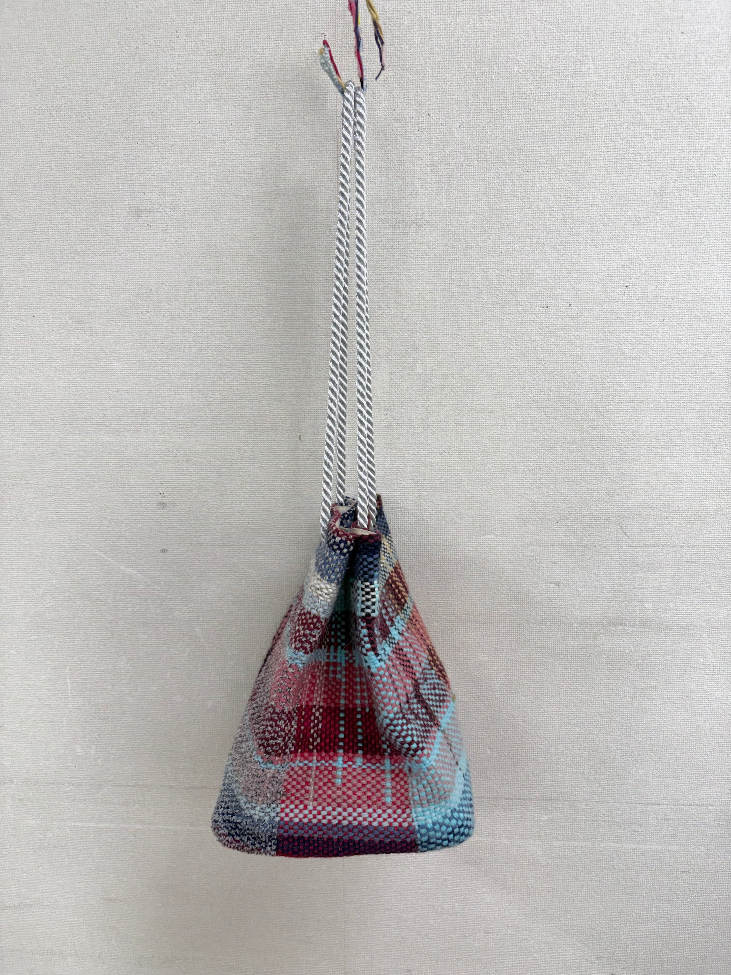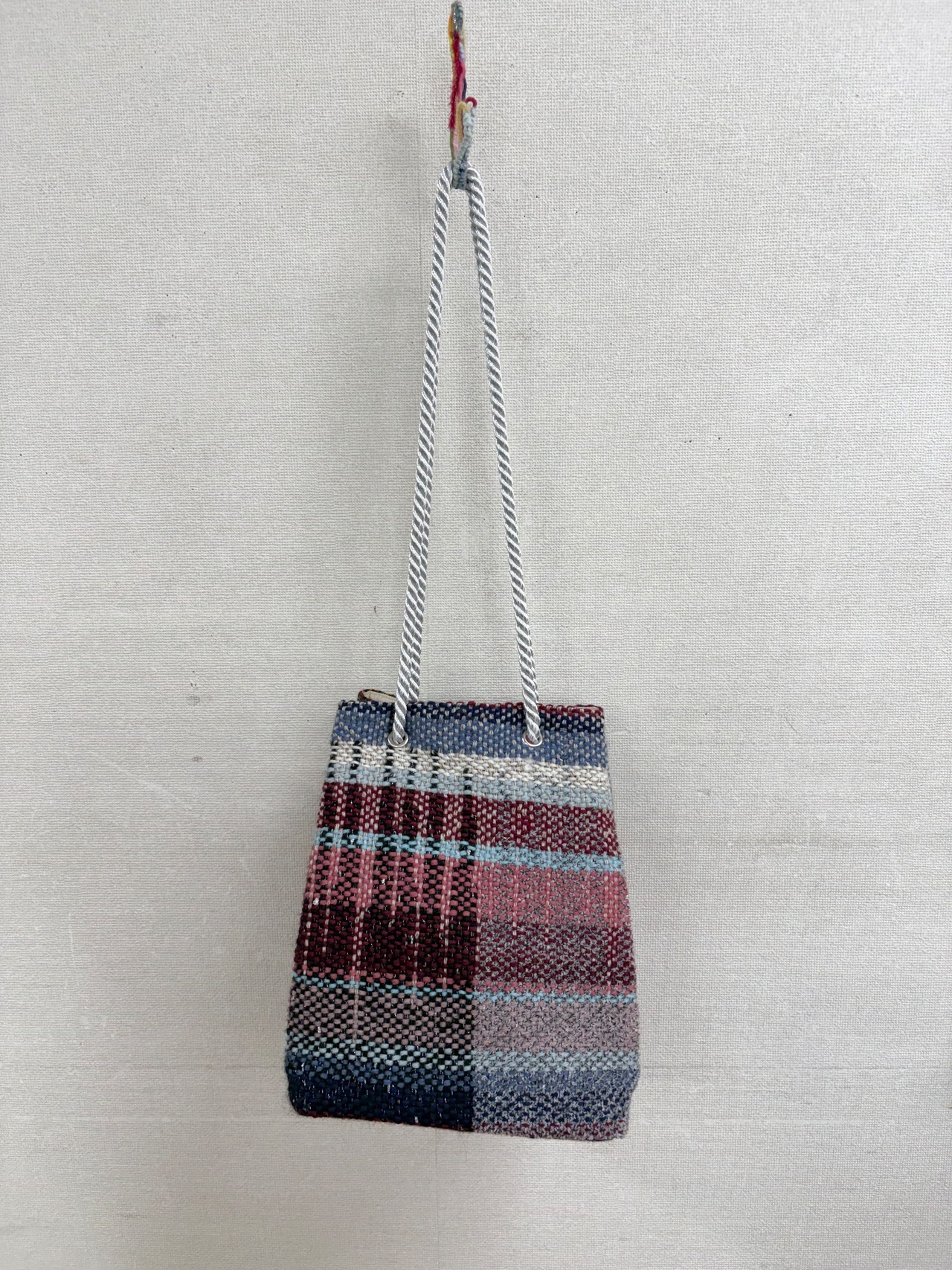 利用者さんが織られた反物を使った巾着ショルダーです☆